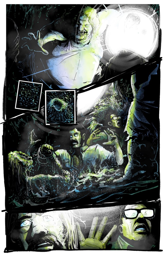 Alex and Ashley Cormack’s artwork is perfect, and I’m talking about that “Michael Fassbender chef kiss meme” kind of perfection. As with John Lees, I have been an enormous fan of Alex’s work for a long time now, and he is easily in my top three comic book artists of all time. I have honestly never read anything he’s been involved with where I think he’s put a single foot wrong. When it comes to realising gritty, realistic characters that are unique, flawed, and above all else interesting, then Alex Cormack is the first person I would think of. Alex is also one of the first artists I would think of if you want to really explore the grotesque, the outré, and the downright horrifying. He’s responsible for some of the most visceral “oh shit” moments in my 40+ year fascination with horror comics, and I think he currently holds the award for the biggest jump scare in a comic (Sea of Sorrows), which was previously held by Junji Ito for the story Jack In The Box from Uzumaki.
