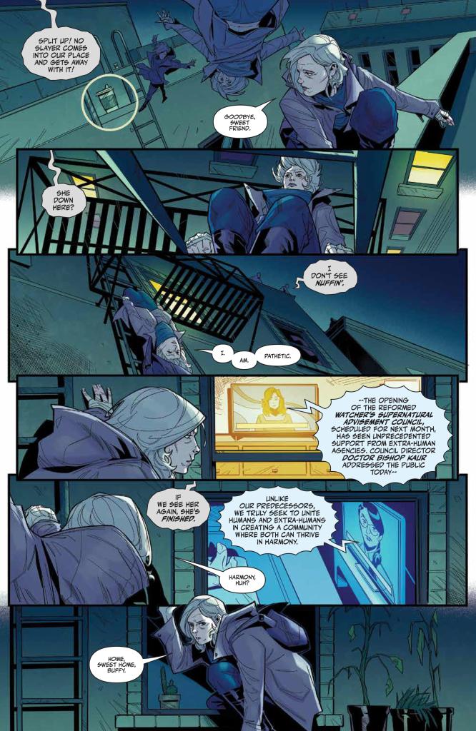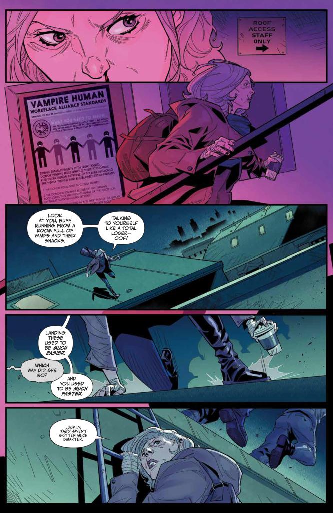 The final pages introduce an unexpected wrinkle to this freshly established status quo, and should be more than enough to ensure that any Buffy fans, lapsed or otherwise, are well and truly hooked and already fired up for issue two. While these “old man/woman” style stories can be a bit hit or miss, the creative team here have done a good job of staying true to the source material while injecting some fresh-yet-logical ideas into this established world.