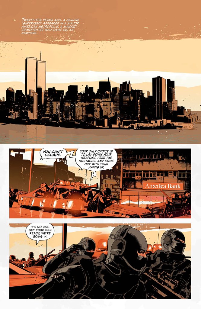 Twenty-five years ago a masked hero arrived on the streets of America, meting out his own brand of justice and gradually transitioning from violent vigilante to national hero to living icon… before disappearing without a trace. Enter disgraced former detective and current private investigator Jake Stevens, who is hired by billionaire Byron West to investigate the hero’s disappearance in the hopes of cementing his legacy once and for all. However, it quickly becomes clear that Jake’s investigation may quickly end up exposing the hidden truth behind the mask.
