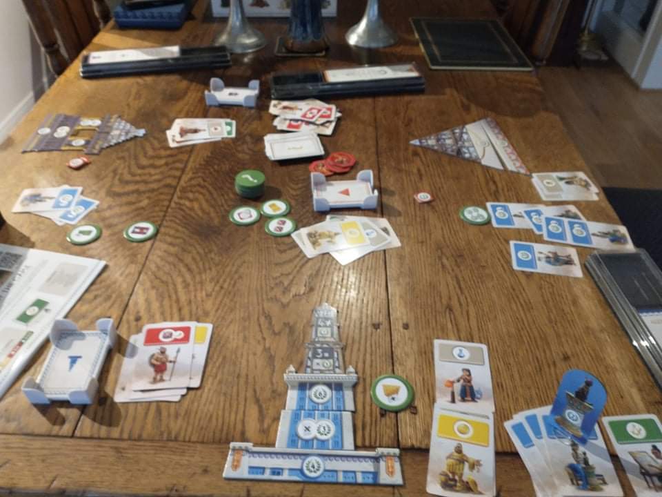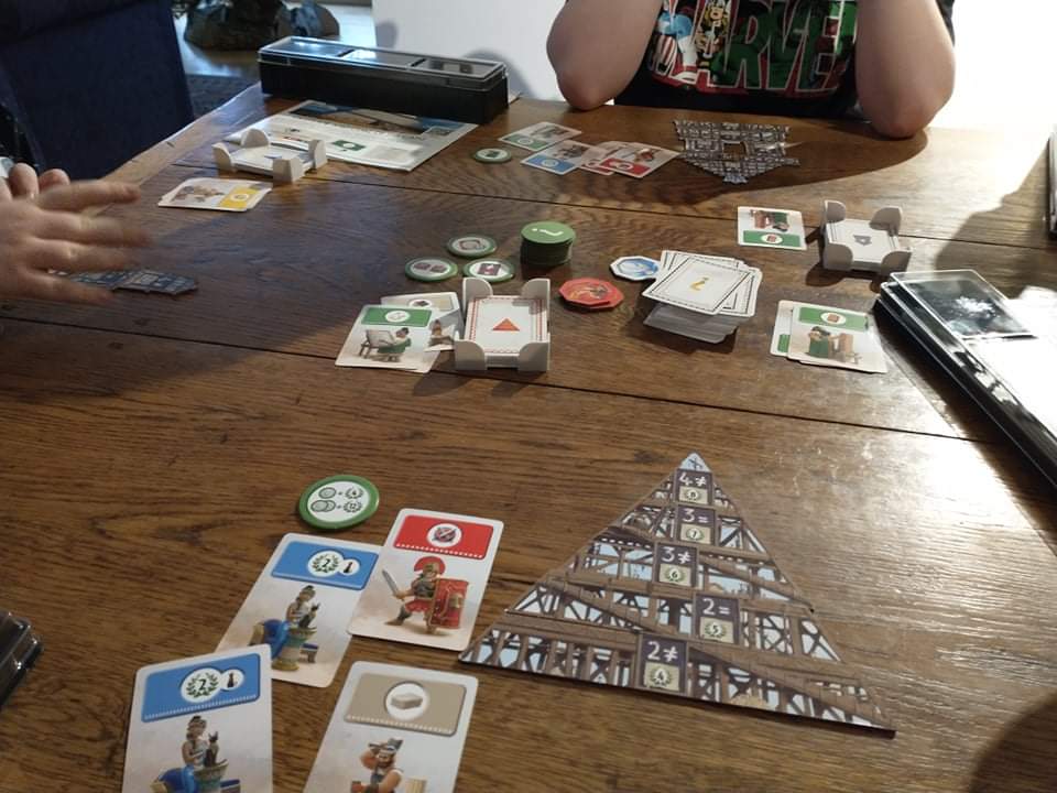 The game is asymmetric, so everyone has a slightly different style of play and challenge: the Pyramid of Giza, for example is worth the most points as you build, but gives you no extra bonuses as you do so, whereas the Colossus of Rhodes adds to your military defence, the Hanging Gardens of Babylon develop science, and so on.