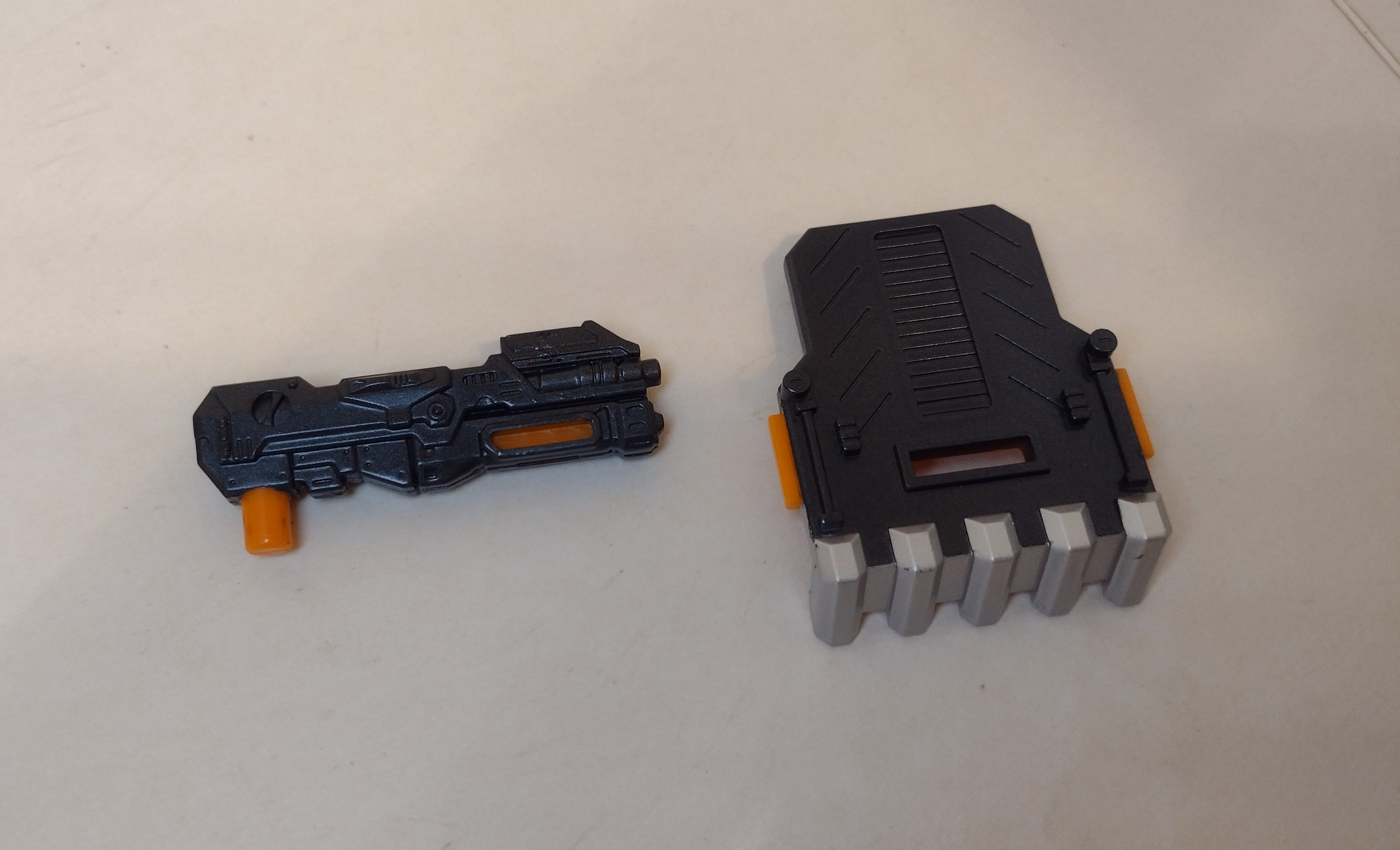 As for accessories, Huffer includes a riot shield – it’s well painted and there’s lots of mechanical detail, while also being a good size for Huffer – and a large gunmetal blaster. The blaster is really chunky and the sculpting is lovely. An interesting note is that, neither of these accessories are traditionally associated with Huffer. The designer definitely wanted this to be a modern upgrade of Huffer and didn’t want to ‘cheap out’ on accessories.