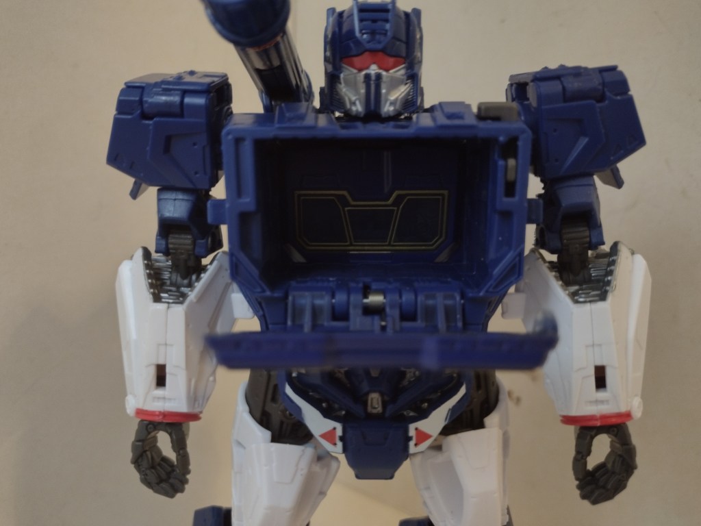 Soundwave on the other hand turns into a blue slab. Yes, I get that it’s referencing a Marvel Comics cover, but Soundwave has had so many cooler alt modes, like the tank truck from war/fall of Cybertron, a figure that this toy shares a heavy robot mode resemblance to. There’s nothing even resembling a landing gear or thrusters, it’s just a slab with a cockpit. And speaking of the cockpit, while I hate the faux nature of it, I can at least applaud the excellent seat and control detail on the inside of it. But by far my favourite detail is the fact that you can fit Titan Masters into the chest as pilots – how disappointing, my favourite detail feels like it’s entirely unintentional.