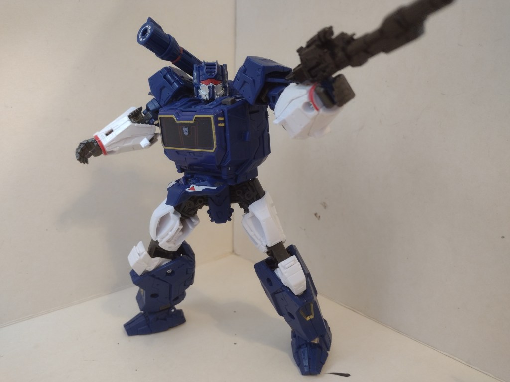 As for accessories, Soundwave has an articulated shoulder canon, which is fine, but could really use some red paint for the missiles. He also has a rifle, which is fine enough, although it’s cast in blue and painted gunmetal – could it not have been cast in black so the paint budget could be used elsewhere? The rifle is also more useful as an add-on for other figures in this wave, and honestly, I would’ve preferred Soundwave’s other weapon, or even a Cassetticon.