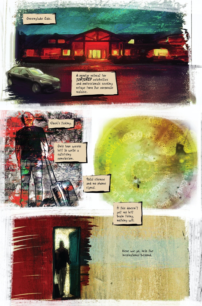 As I mentioned above, the themes covered in this story will likely resonate with a great many readers, this one included, and while several moments have been exaggerated for horrific effect, there’s still a worryingly relatable tone to a lot of our protagonist’s inner monologue and the crippling doubts and anxieties he struggles to push his way through. This is the kind of comic where you need to take a moment to catch your breath after reading, and I’d highly recommend checking out the Kickstarter while you still can to grab yourself a copy.
