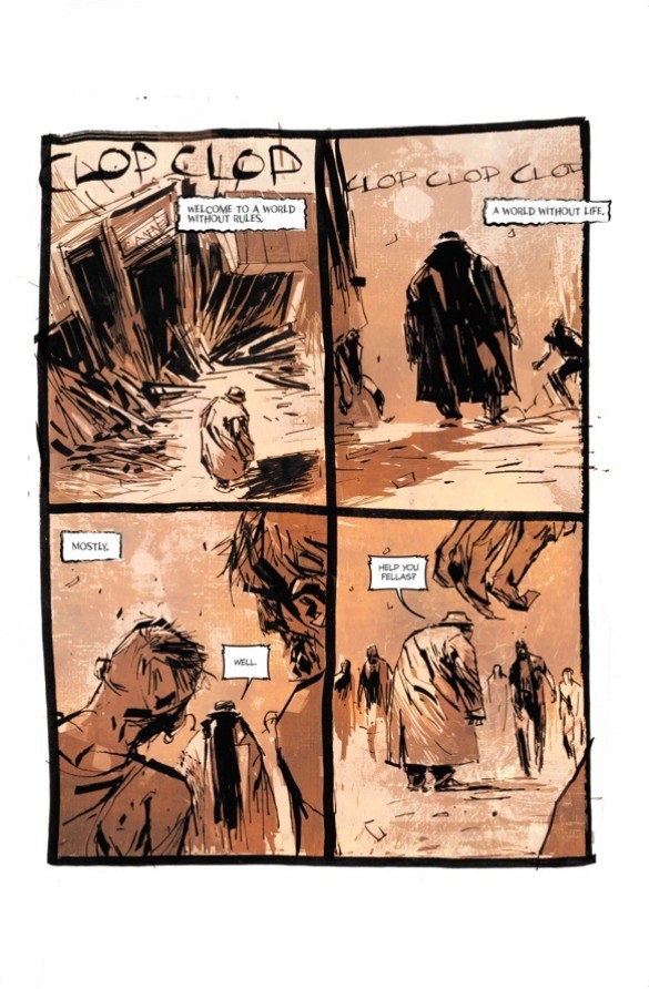 Undeniably providing the shambolic robots’ great plan with an even stronger sense of desperation is Ashley Wood’s incredible-looking artwork. The oft-times scratchy, rather undisciplined nature of the Australian concept designer’s art genuinely imbues this comic’s storytelling with an all-pervading sense of unapologetic bedlam, and also helps sell the sheer desolation on show across the entire Earth once the nukes fatally begin to fall in an almost homicidal effort to protect any remaining people from the innumerable zombie horde.
