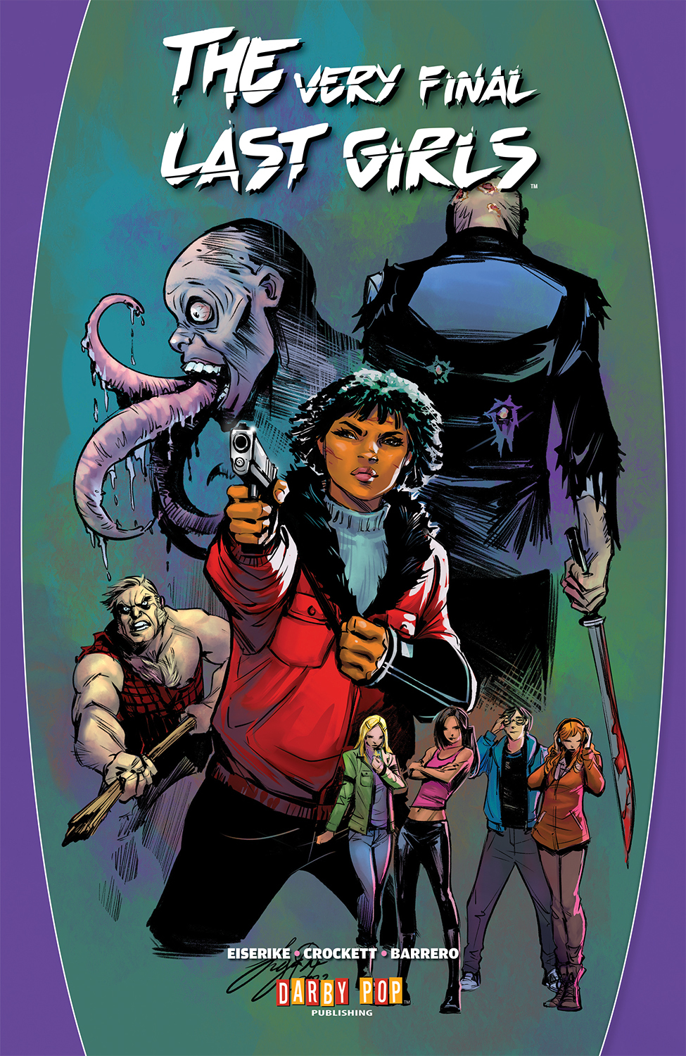Darby Pop Publishing have just announced details of THE VERY LAST GIRLS, a 162-page graphic novel from writer and letterer (and Ignatz Award winner) Josh Eiserike, artists Z. Crockett and Andres Barrero and colourist Michael Woods that asks the question… “What happens when ’80s horror tropes come back to haunt you?”