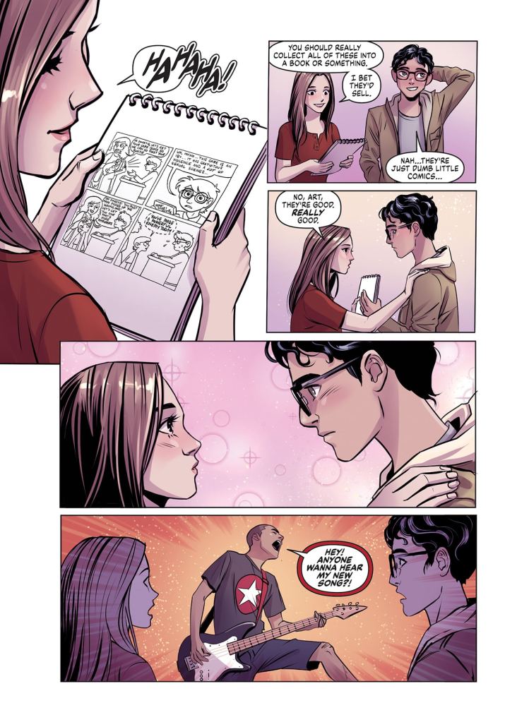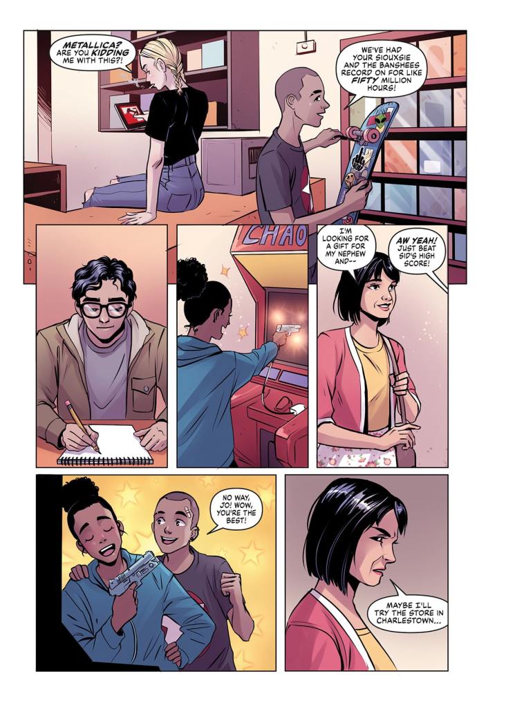On the visual side of things, Lobo does a great job of bringing the narrative ebb and flow to the page. For such a character-focused book there’s obviously a lot of dialogue focused scenes, but Lobo keeps things visually interesting throughout. She also throws in some cracking artistic flourishes, such as a recurring “recap” style musical montage where we take stock of where all the characters are mentally (and a really cool sequence based on the classic Gauntlet arcade game) for good measure.