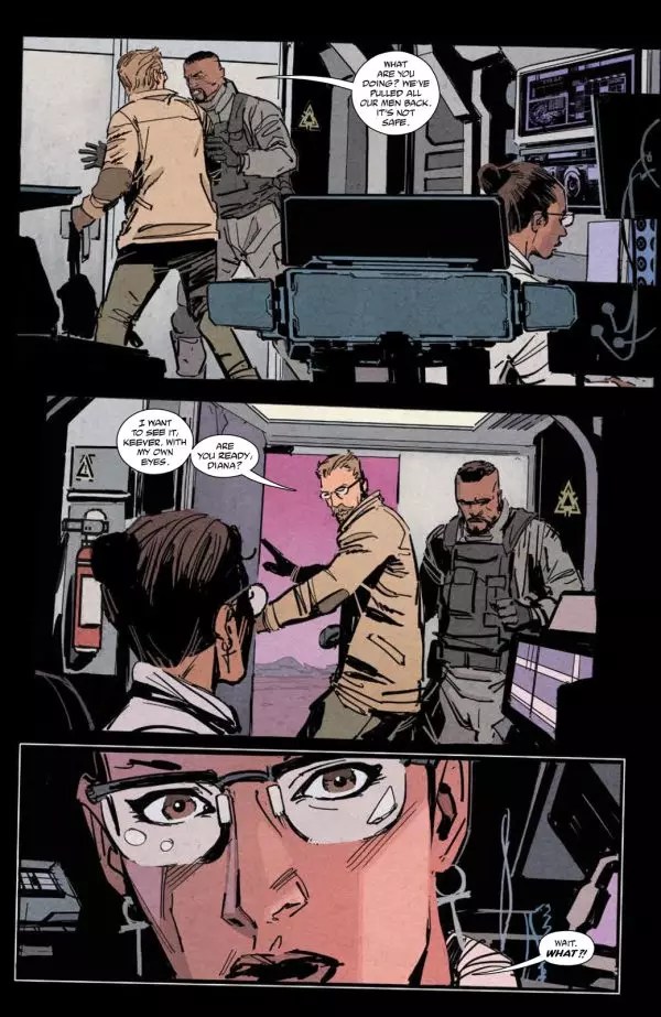 Supposedly depicting the titular character’s ‘mental journey reaching its culmination’ whilst being voluntarily trapped inside a metal box buried deep beneath a featureless desert, Keanu Reeves and Matt Kindt’s storyline for issue eight of BRZRKR certainly tries to maintain the sense of savage destruction which has followed “Unute” since this mini-series’ start. Yet despite the twenty-four-page periodical containing so violent an earthquake that the American authorities lose eleven men to Caldwell’s grand experiment, it’s decidedly difficult not to imagine that some within its audience will be disappointed with the central plot’s seismic shift in direction.