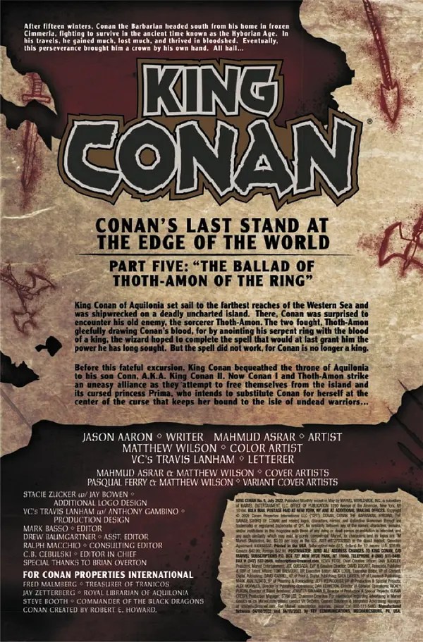 Hot on the heels of an issue four that may very well be the best comic I’ve read all year, Marvel’s King Conan surges into its penultimate chapter here by digging a little into the twisted origins of Thoth-Amon. Series writer Jason Aaron takes us right back to the childhood of the dark wizard, giving us some insight into his formative years but, vitally, never making him a sympathetic character in the process.