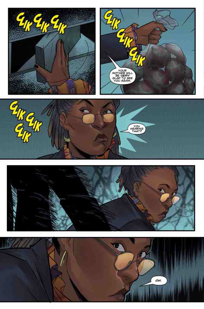 Happily however, what this issue debatably lacks in sense-shattering shenanigans, it certainly makes up for with its spot-on portrayal of tour guide Ruth Clayton’s rather ruthless alter-ego. Quick-witted, bitingly sarcastic and ever keen to disregard her orders to ‘shoot on sight’ for a much more benevolent, communicative approach, Houser’s ability to imbue “the Fugitive” with all the fire of actress Jo Martin’s popular incarnation is a resounding success, making it incredibly easy to hear the British thespian’s distinctive tone whenever the comic book character is talking, or even breathlessly running down a corridor.