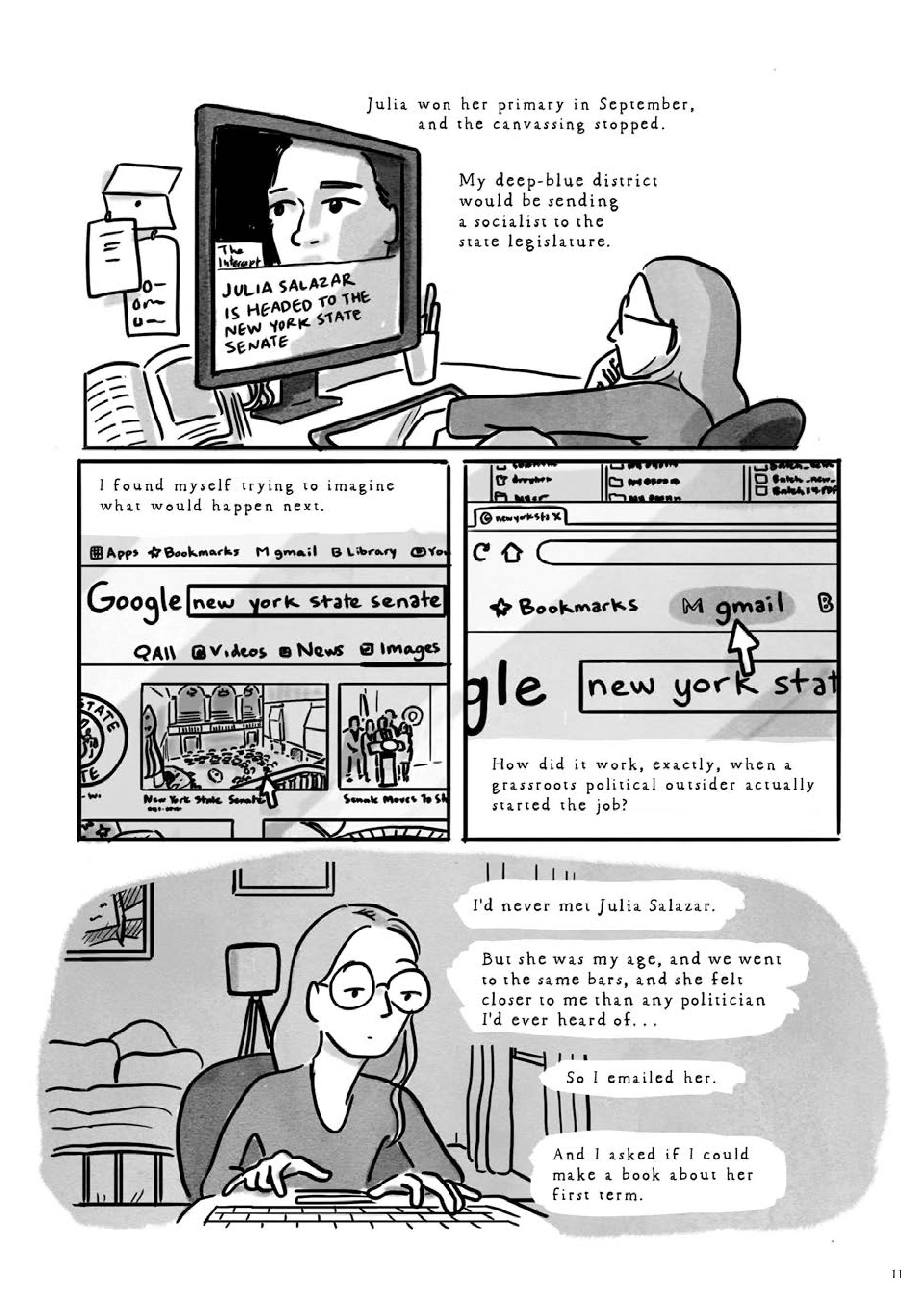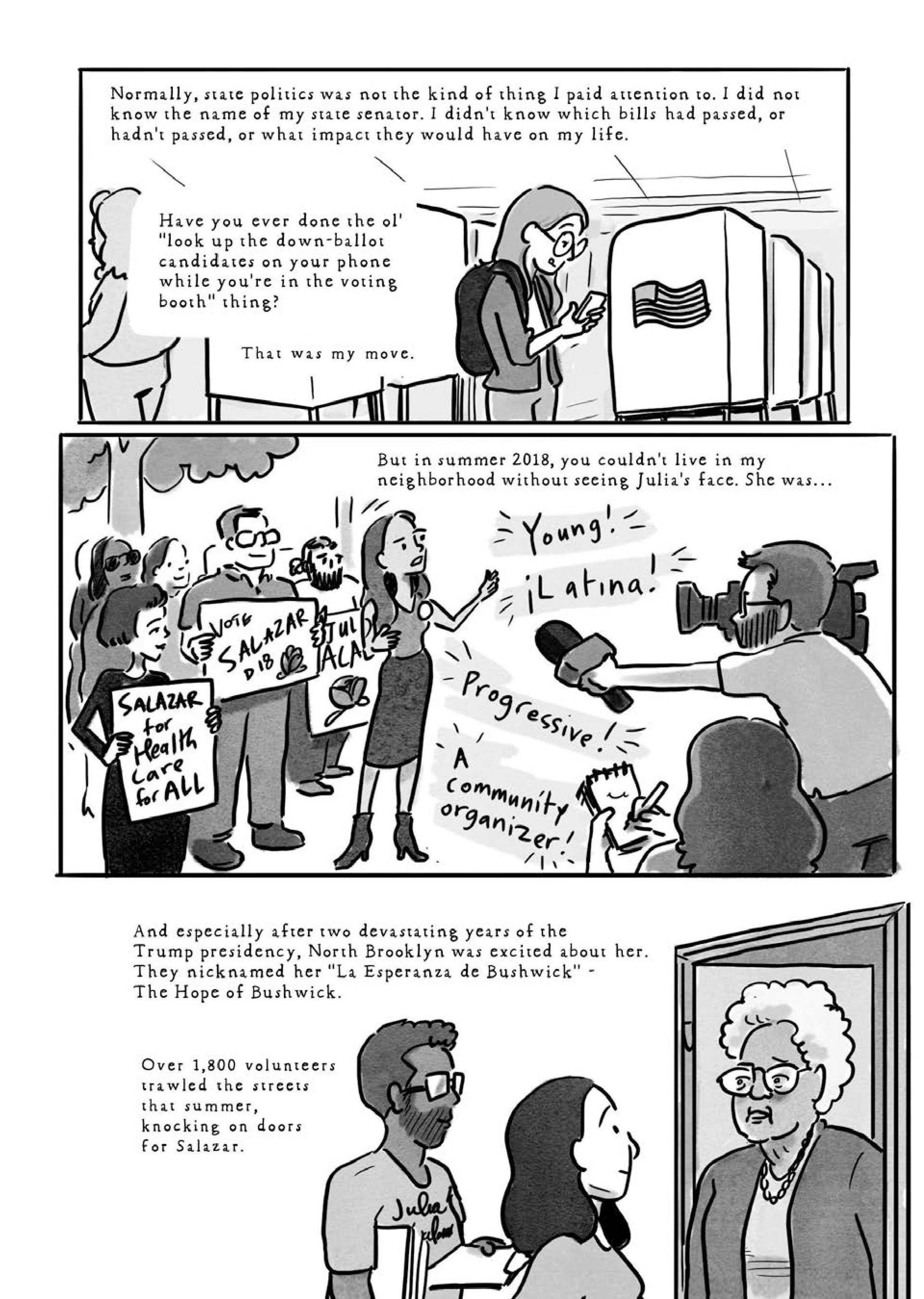 In early 2018, cartoonist Sofia Warren was not paying attention to New York state politics. But that summer, her Brooklyn neighborhood began buzzing about Julia Salazar, a 27-year-old democratic socialist running for state senate whose grassroots campaign was inspiring an army of volunteers. When they beat the odds and won, Warren found herself wondering what would happen next. How does it work when an outsider who runs on revolutionary change has to actually do the job? So she decided to find out.