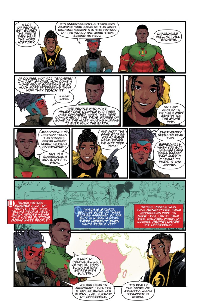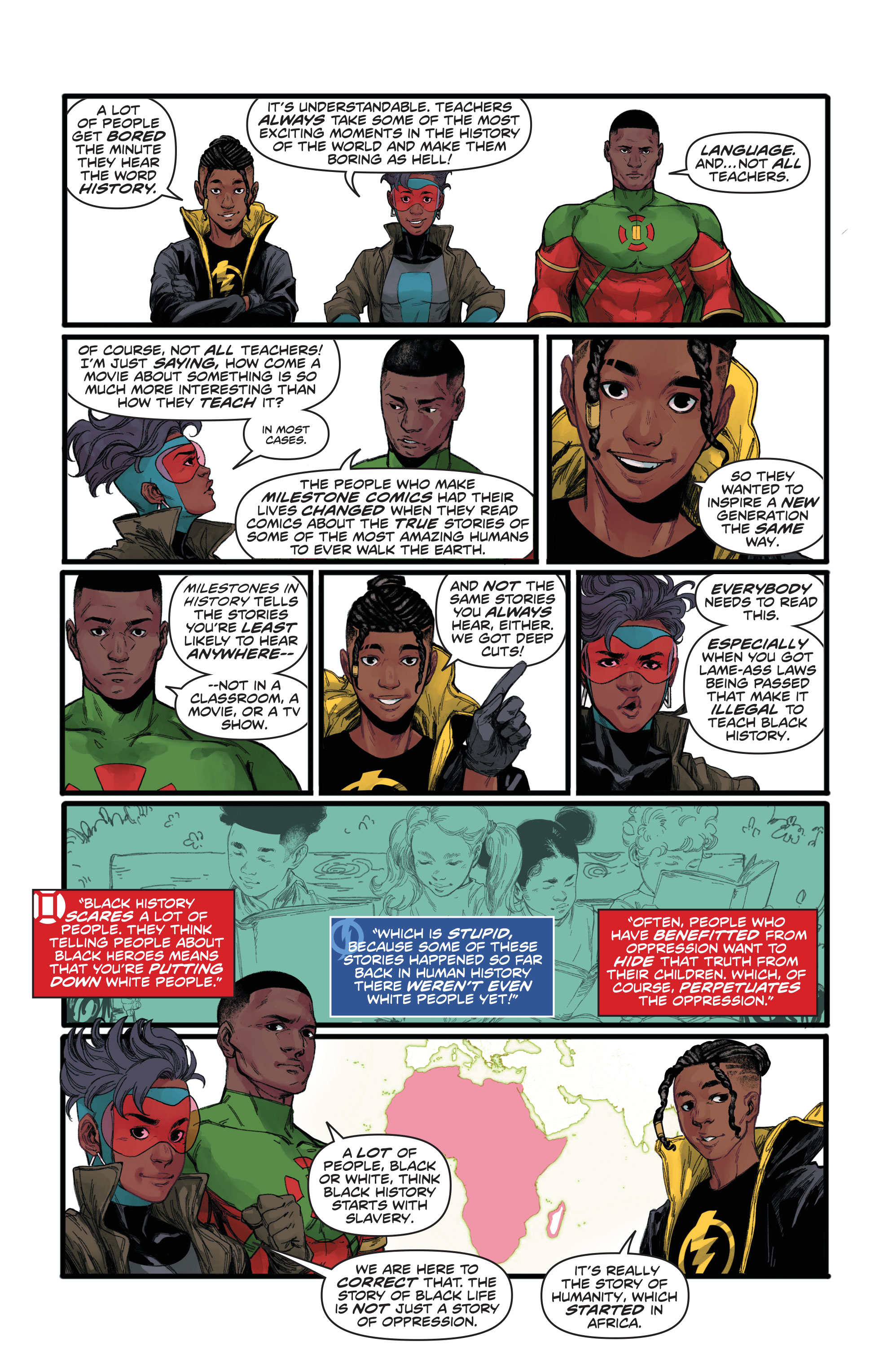 From the realms of literature, aviation, music, dance, military conquest, and more, the history of the world is Black history, and this special aims to prove it! Plus, don’t miss the shocking final-page reveal that points to the future of the Milestone Universe line!