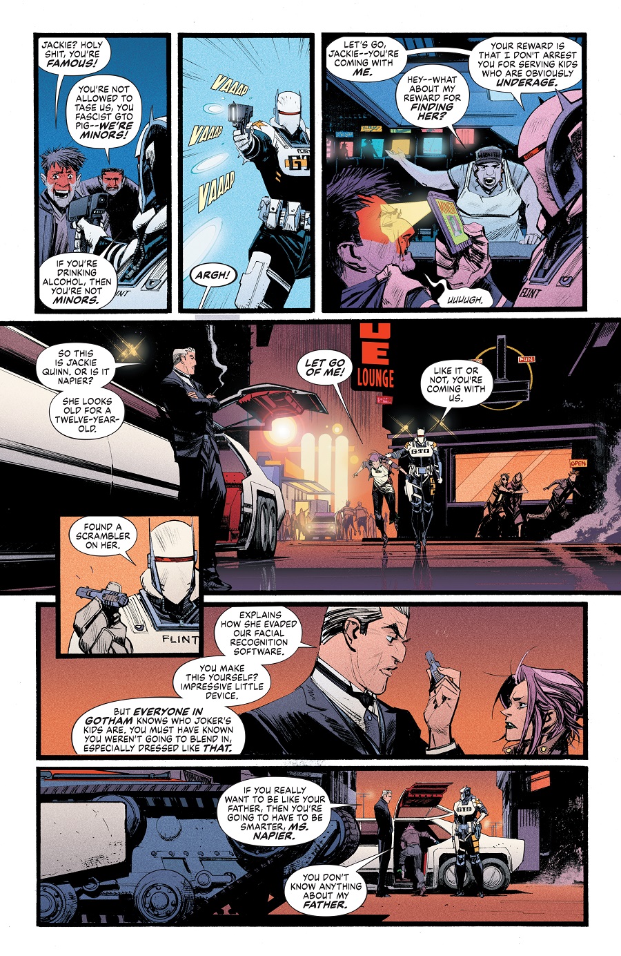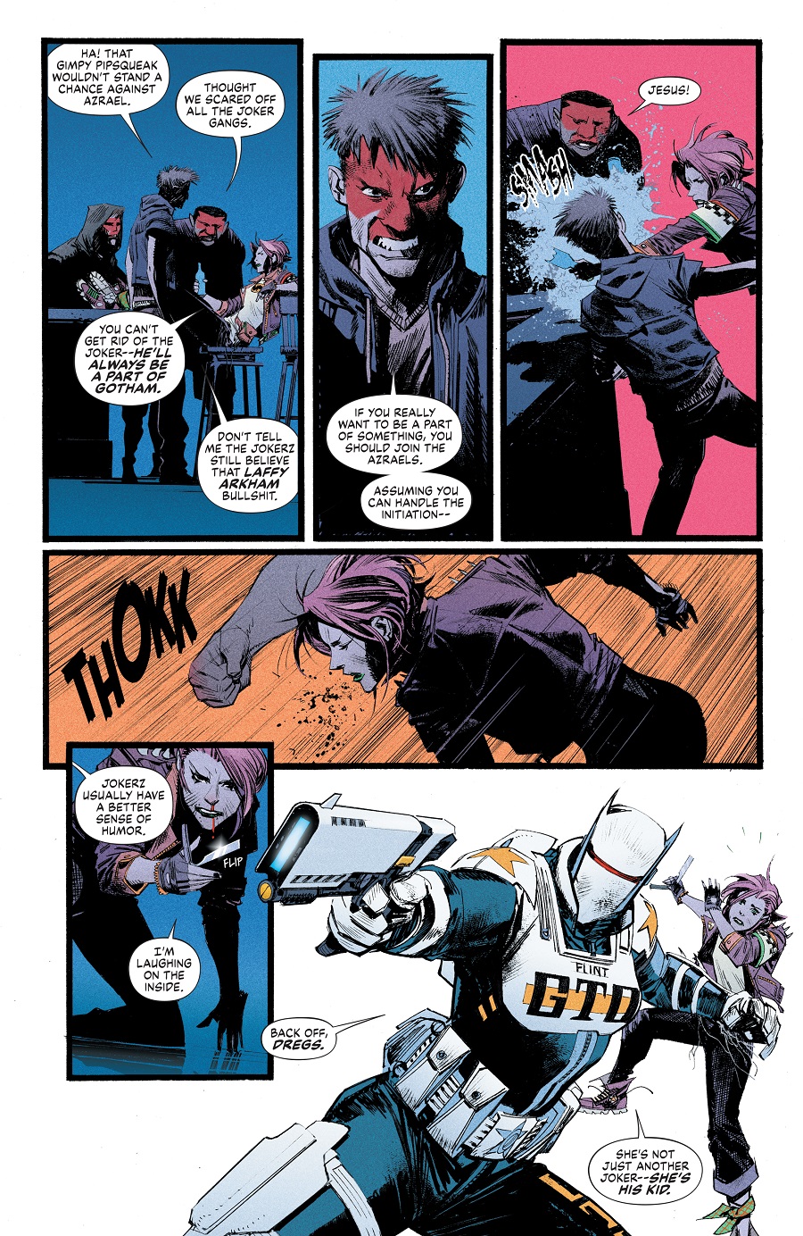 The hunt continues as Bruce Wayne searches for the most dangerous offspring in Neo-Gotham, the daughter of The Joker! Little does he know the new Batman is right behind him, waiting for just the right moment to strike and put an end to the older generation of heroes in the city. All seems to be going according to plan for Derek Powers, as his true intentions are revealed. Plus, Ace the Bat-Hound joins the story!
