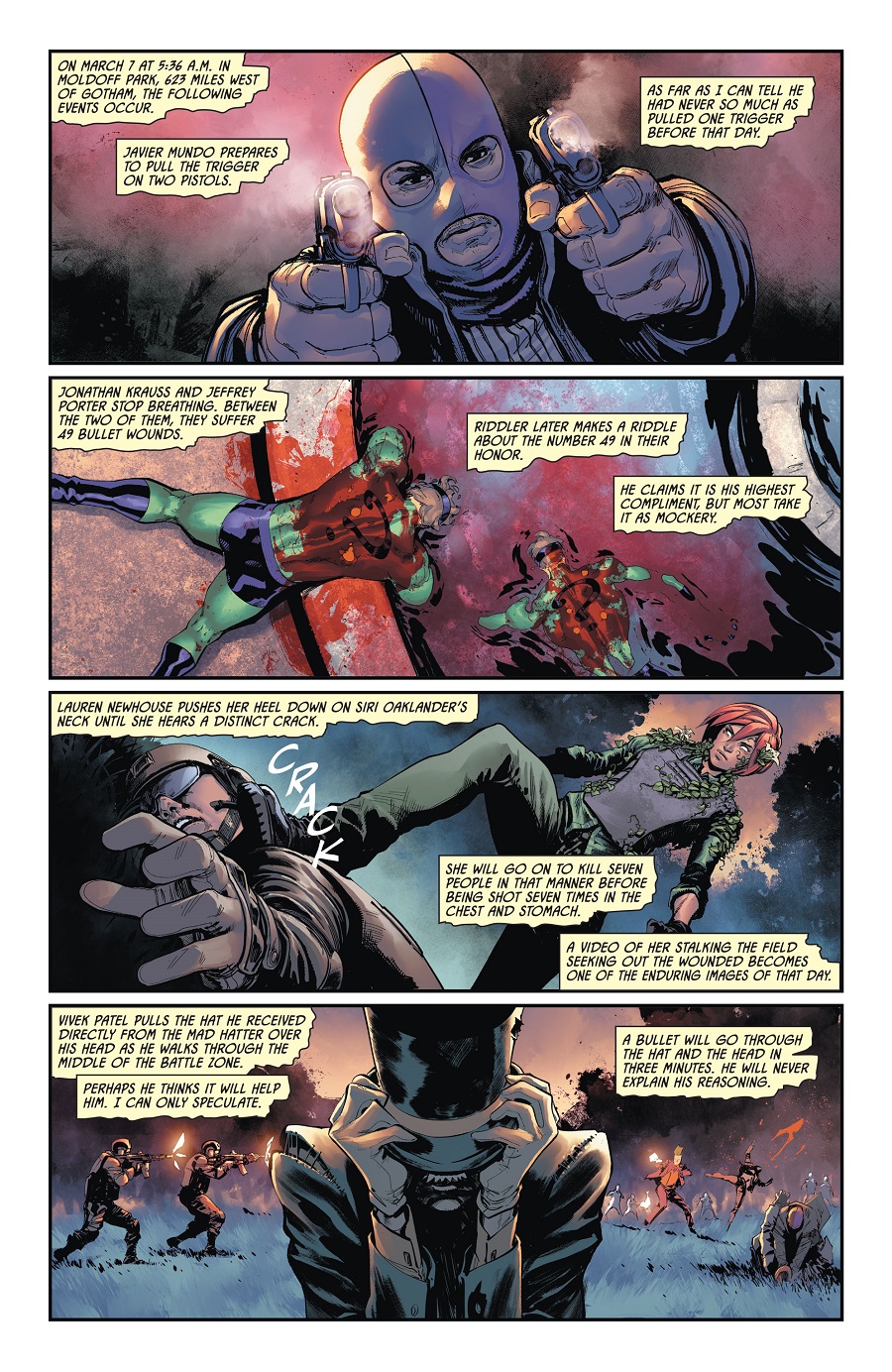 The heist of the century has gone so far sideways that an all-out and very bloody gang war is imminent, with Batman, Riddler, and Catwoman caught in the crossfire. What is the mysterious object that so many are willing to murder so many for, and how does it connect to Bruce Wayne? As we reach the climax of this thrilling series, the clock strikes its deadly hour—the time for killing is here!
