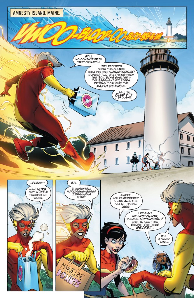 The explosive miniseries starring Kid Quick and their allies shifts into even higher gear as Teen Justice investigates the Church of Blood! When efforts to infiltrate the mysterious church backfire, one hero faces a devastating loss!