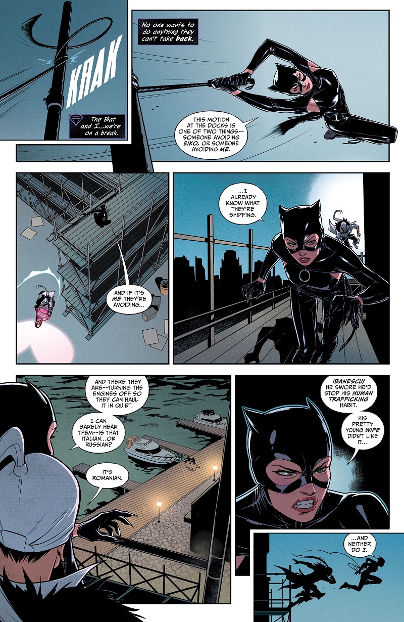 Roman Sionis has been brought to his knees, but enough is enough. Catwoman’s vacation is over and it’s time to get back to work. But Selina has never been Gotham’s only protector, and she’ll have to contend with a well-meaning family of bats…