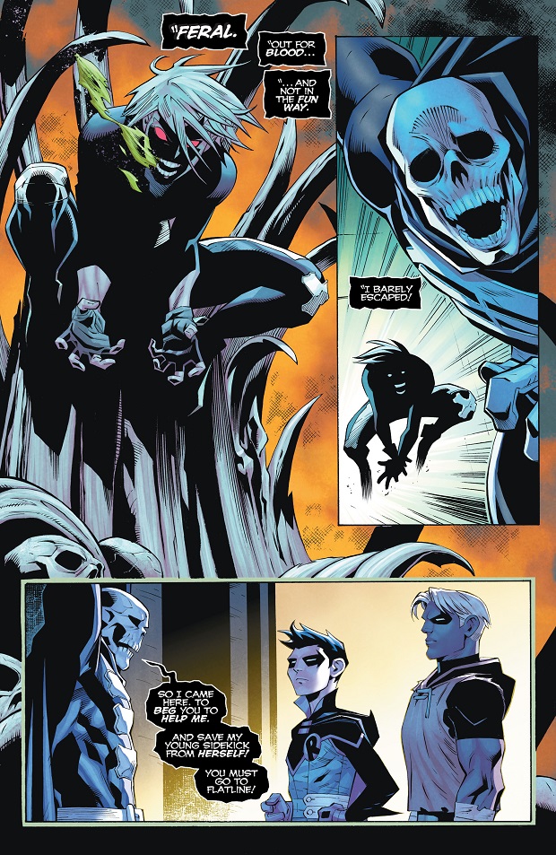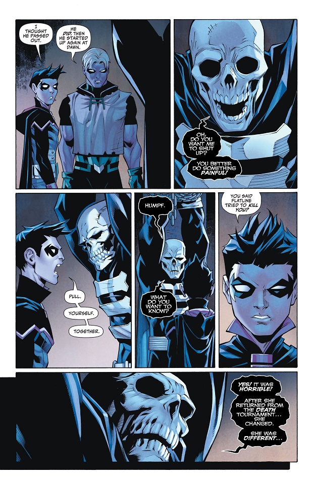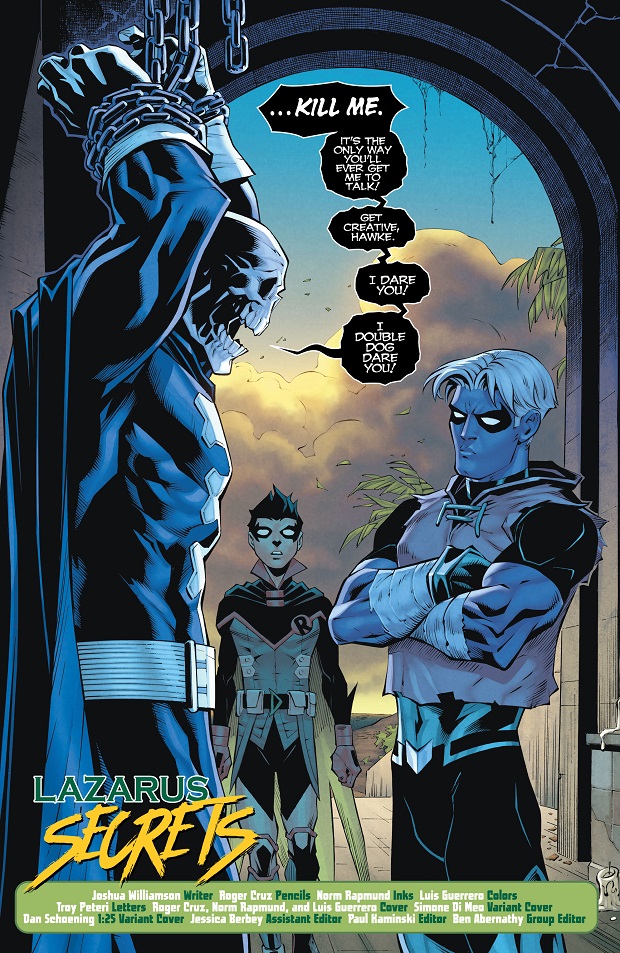 Robin’s investigation into Lazarus Island is put on hold as Lord Death Man strikes. Damian and Hawke are called to Tokyo by Flatline to help her deal with her crazed mentor. Which means…killer-bros road trip!
