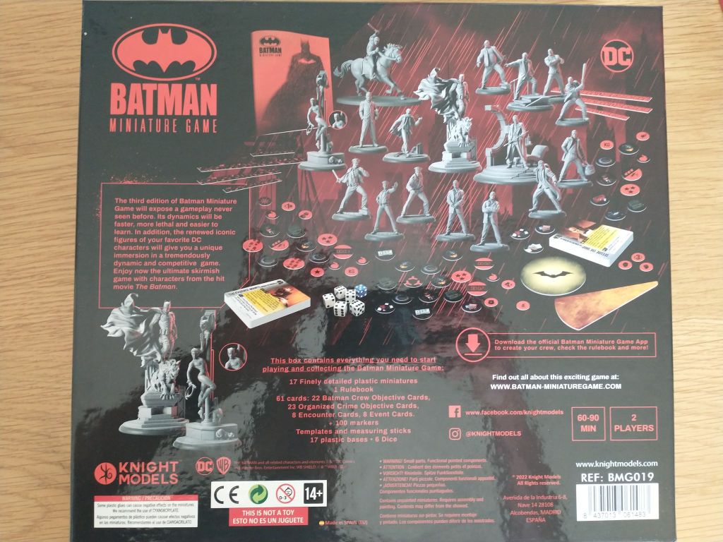 First of all, of course, are the minis. The two factions are The Batman / GCPD and Falcone / Organised Crime, though some cops will work for OC so there’s plenty in here. The 17 models included are in KM’s new thermoplastic used for the most recent wave of other releases, and having played about with all this is by far their best material: crisp detailing, minimal flash, not too flexible (a criticism oft levelled at the first wave of 3rd ed) and limited cleaning required.