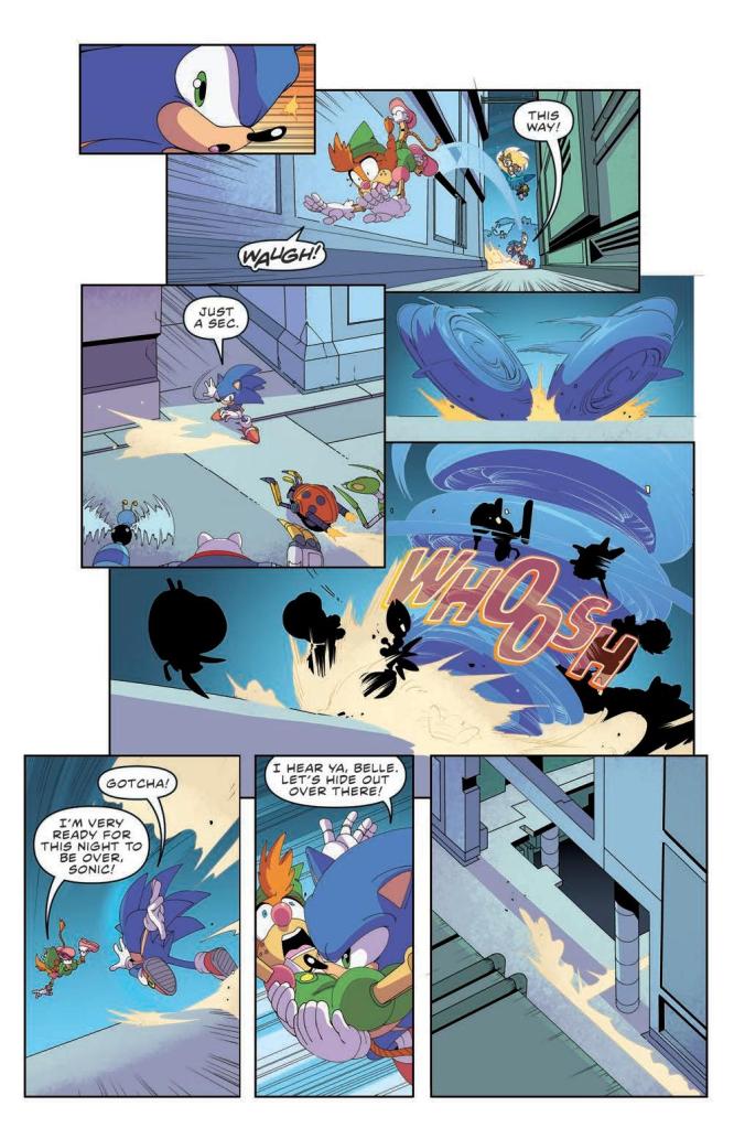 After fighting for their lives in issue #50, both the heroes and bad guys need some time to heal and regroup…except Dr. Eggman, of course, who is always ready to destroy that darn hedgehog. Can Sonic, Tails, and Belle escape the city, or will Eggman finally bumble his way to victory?