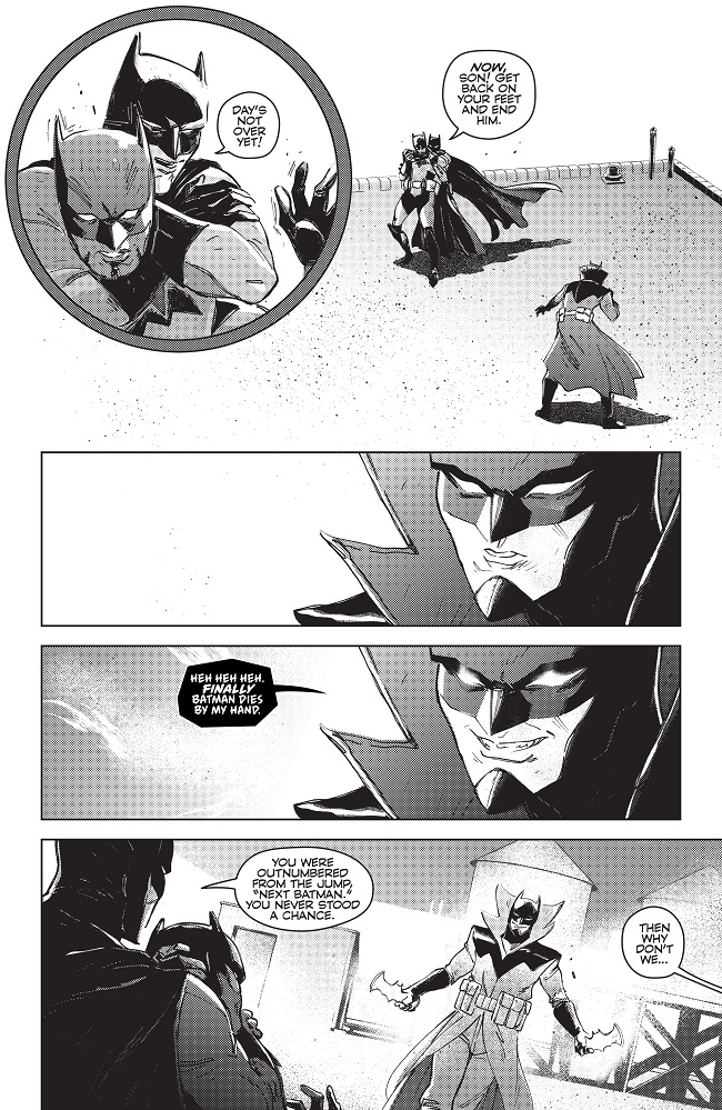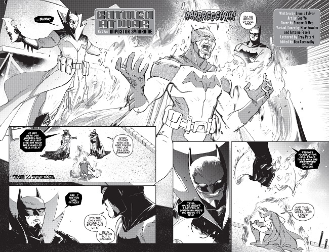 Batmen at War part four! Jason Todd and Hunter Panic must help Jace, the Next Batman, against the original Batman and…his son Batman 666?! And while all hell breaks loose in Gotham the rest of the Bat-Family have an intervention with Nightwing about his addiction and claiming the mantle of Batman for his own! And if Damian is with his father, then who is the Batman with Talia?!
