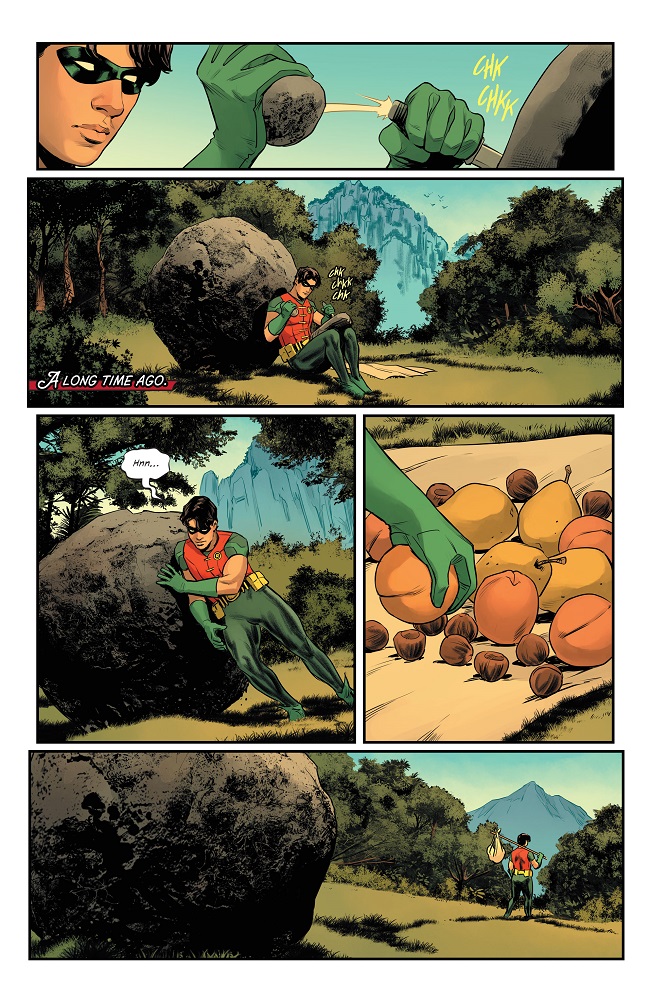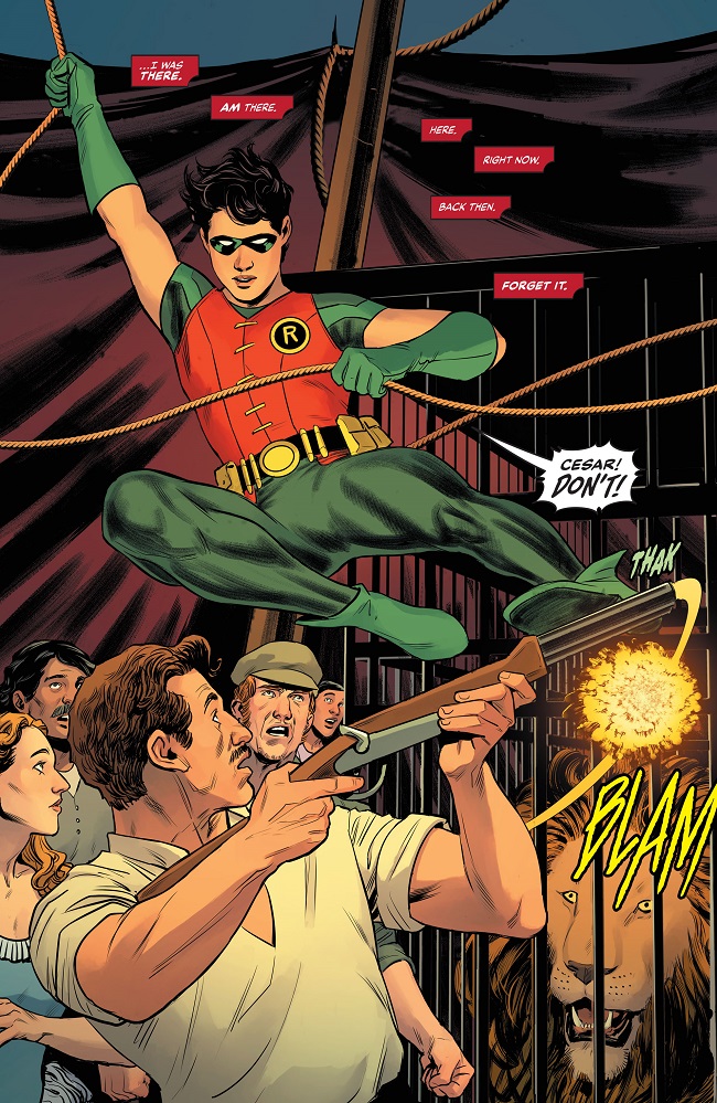 THE FLYING GRAYSON FLIES THROUGH TIME! The Dark Knight and the Man of Steel might have been victorious in their battle against the dreaded Devil Nezha (but were they, though? More on that to come, kids…) but there’s one thing they forgot in all the madness…Dick! Robin the Boy Wonder is lost in time like some kind of chrono-Home Alone…and to find him, Batman and Superman will need to get creative!