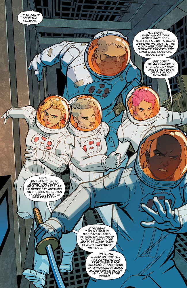 I went to the moon to eat cheese and fight aliens…and I’m all outta cheese. Actually, there wasn’t any cheese. I think that’s a myth…but aliens, hooo boy, do we have aliens! Horace Reginald Giger would be proud! What? No…I’m positive that’s what “H.R.” stands for. Anyway, this alien-monster-thing might not get a chance to devour Task Force XX, because we’re probably gonna kill each other first. What’d you expect, sendin’ a buncha angry villains to space without any cheese? I warned ya! The Harley Quinn and Task Force XX space event you’ve always needed continues here. Cheese not included.