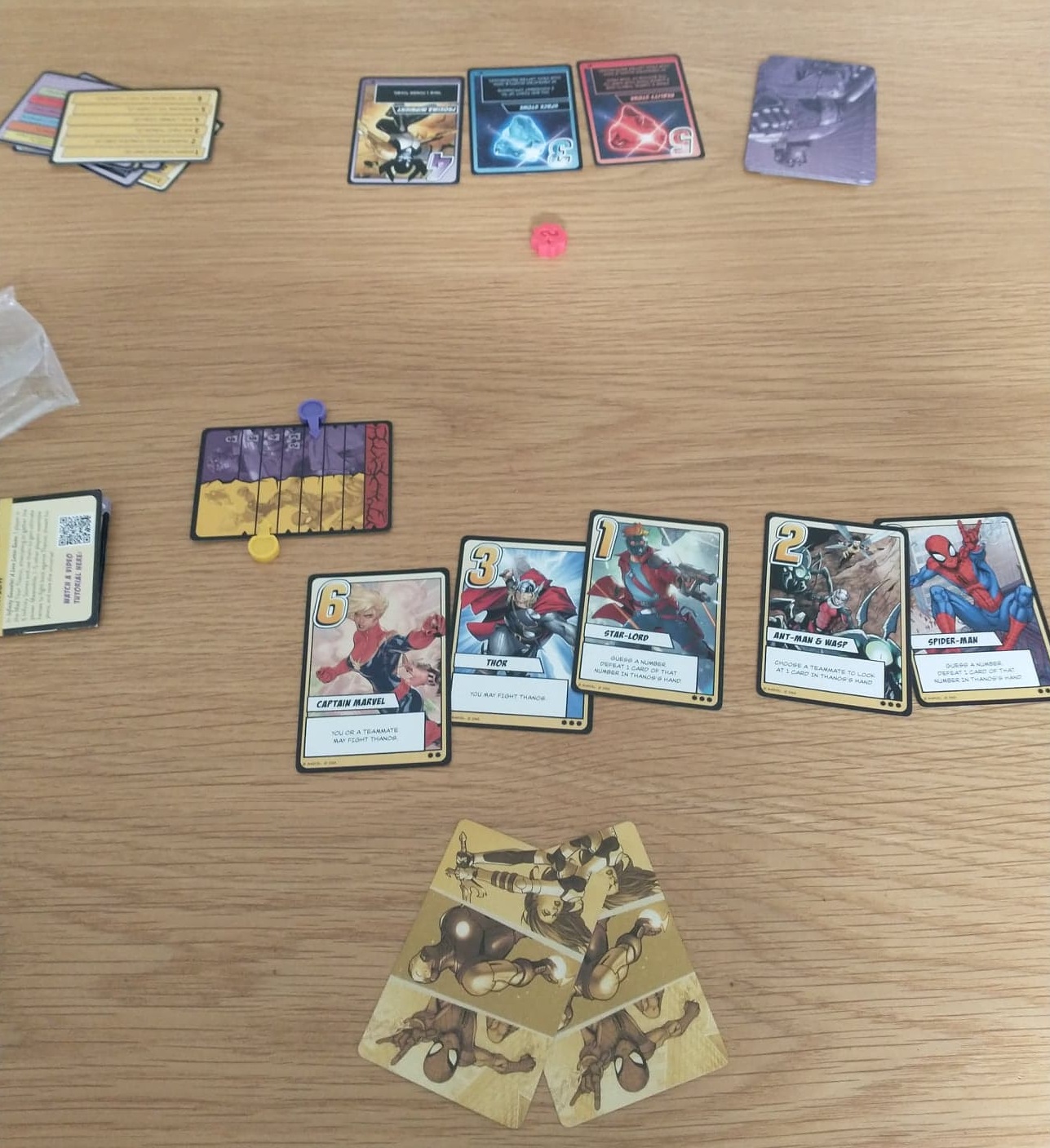 Continuing the theme, Love Letter’s take on the Marvel theme is a very different and much more comprehensive reimagining of the original. An asymmetric game that fits in the pocket is always going to get my attention, and here you’re playing either as Thanos acquiring the gems or the Avengers trying to defeat him. It is quite unlike the light, low-weight experience of Jabba’s Palace: despite having the same draw one, play one mechanic, this is a fiendishly difficult game to win as the Avengers, though more players means a greater chance of victory, interestingly.