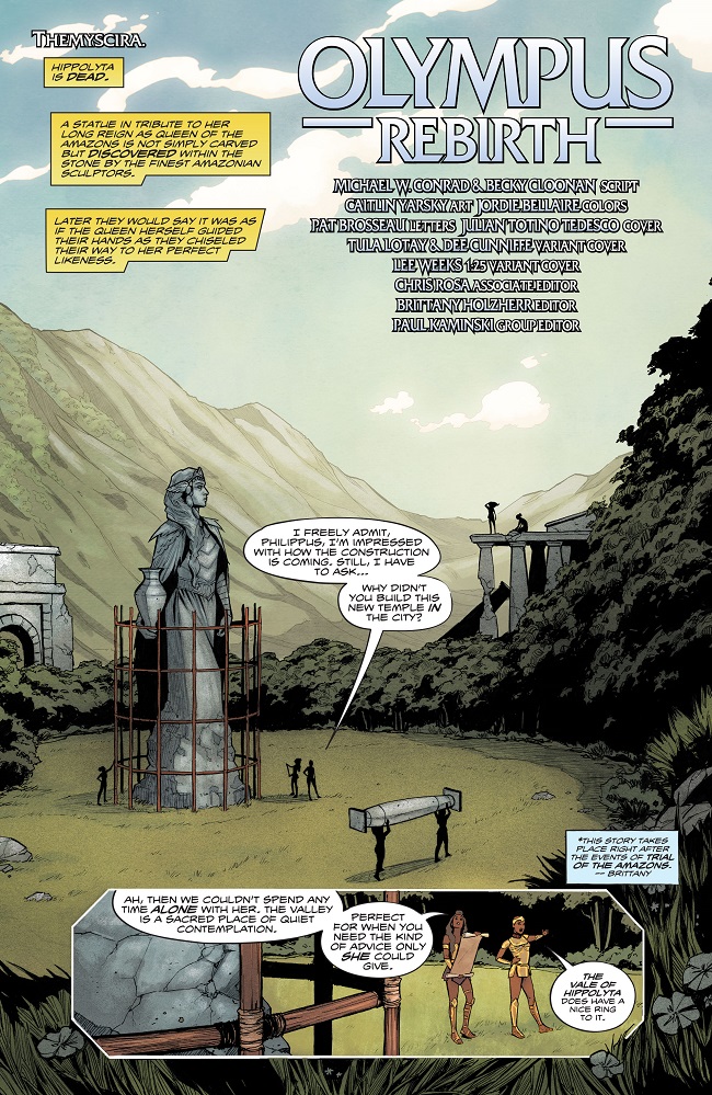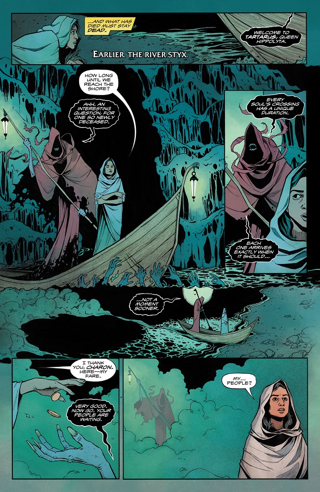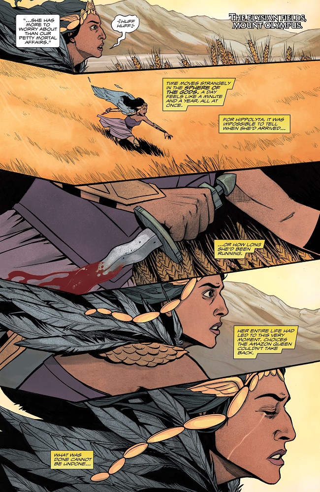 After years of bitter and violent conflict, the Greek pantheon of gods stands united to welcome their latest goddess…Hippolyta of Themyscira! Due to her heroic efforts in the mortal realm, the former queen has earned her rightful place among the gods and plans to use her newfound powers to take care of her Amazon sisters from beyond. Little does she know, some of the gods are wary of the new future Hippolyta brings and will do just about anything to stop it!