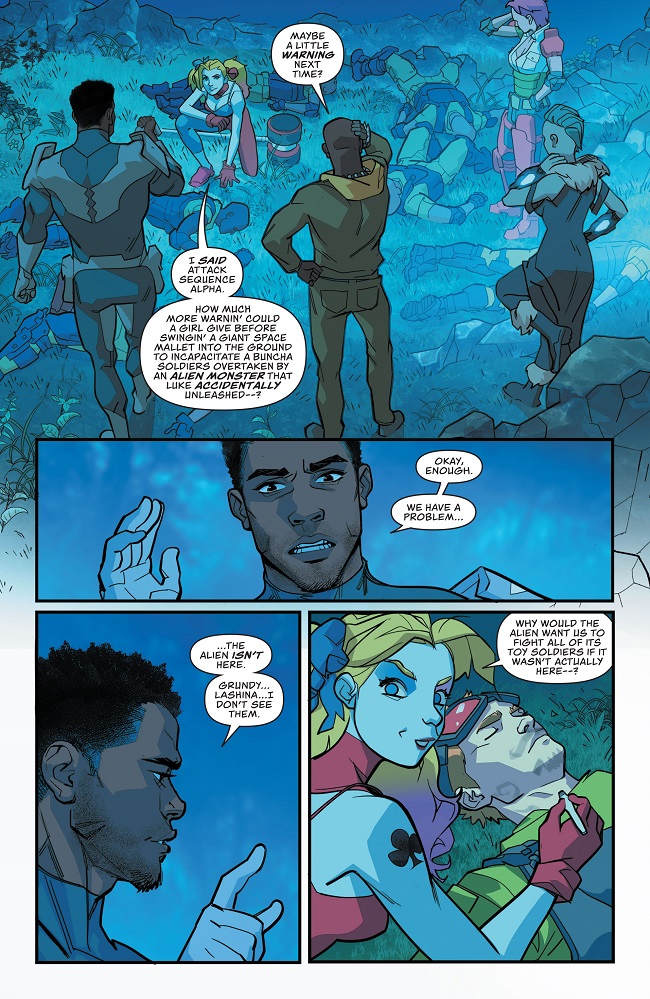 Do you know what ol’ Grandma Quinzel used to say? “Live long and fight alien monsters to save Earth!” She was full of wisdom like that. And only Task Force XX can save our little blue marble from suffering a full-scale alien takeover! Not all of us are going to survive, but at least we’ll look really good dying thanks to Luke Fox providin’ some new gear. Tune in for the final installment of Harley Quinn’s Task Force XX Space Extravaganza, plus the start of a new status quo for Harley Quinn!