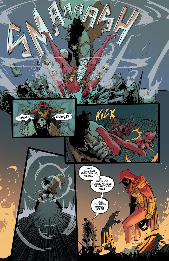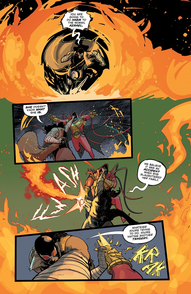 Vengeance of the Poor Fellow! Vengeance has arrived to capture Brielle, the young woman who has come to Azrael for help, but Azrael won’t let this stand. He will fight back against Vengeance and her forces…but will he be able to keep the murderous programming of the System at bay? And is Brielle all she seems, or is she hiding secrets that could shatter Jean-Paul Valley forever? All this as Azrael’s foe the Poor Fellow pulls the strings…
