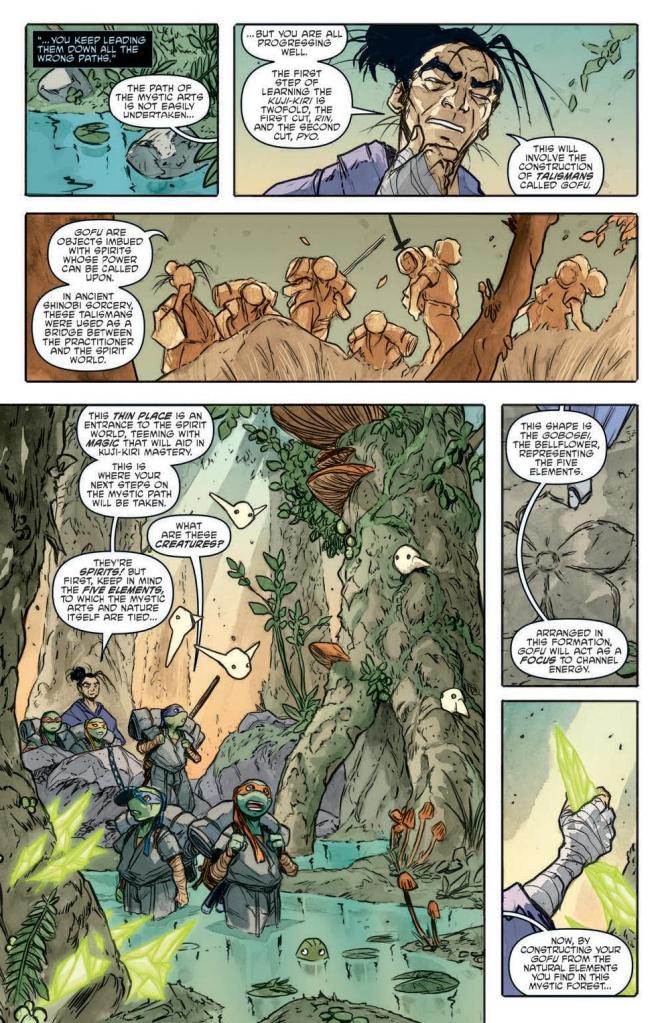 As the TMNT continue to train under the tutelage of the Shredder in Northampton, the techniques they are learning take a bizarrely arcane turn. Will Michelangelo, Donatello, Raphael, Leonardo, and Jennika learn how to master and control the dark ninja arts…or will they be consumed by them? One thing’s for certain: if they are to have any chance at success, they will need to seek out a light from the past to help guide their way.