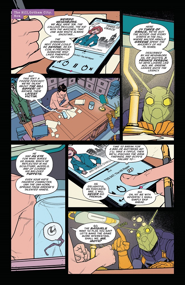Steph has a…date? With an actual boy? Well, this calls for a celebration…or a trip to the zoo! The Batgirls and Steph’s dreamy love interest are in for a day of monkey business, but all that monkeying around ends when they’ve got henchmen on their tails! Meanwhile, Babs is one step closer to tracking down the Hill Ripper—too bad all it took was yet another homicide.