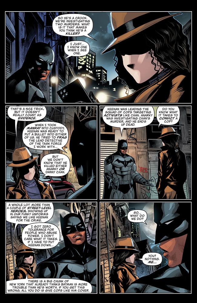 Batman and the Question’s investigation into Anarky’s murder puts them directly in the crosshairs of a rogue police unit set up to deal with the “radical” activist, and which is willing to kill to keep their secrets. At the same time, as she watches a friend being lured back into a life of crime, sitting on the sidelines is no longer an option for Tiffany Fox.