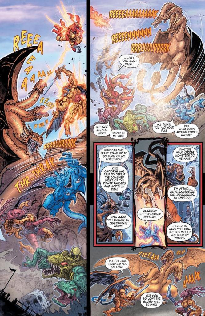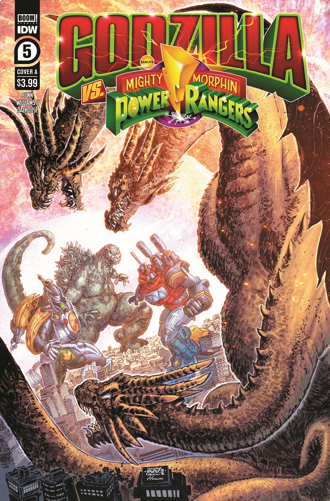Godzilla and the Mighty Morphin Power Rangers have faced a host of terrible foes. Now, though, they face their greatest challenge—the mighty King Ghidorah! Can the “teenagers with attitude” and the King of the Monsters put aside their differences long enough to survive an attack from the three-headed tyrant? Find out in the bombastic conclusion to the most colossal crossover event of the year!