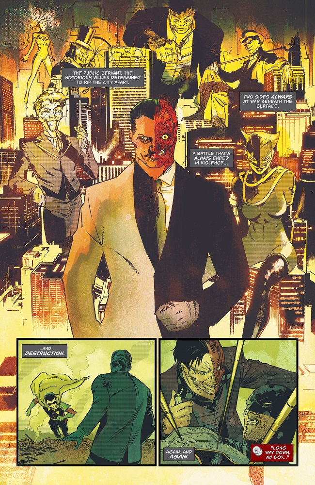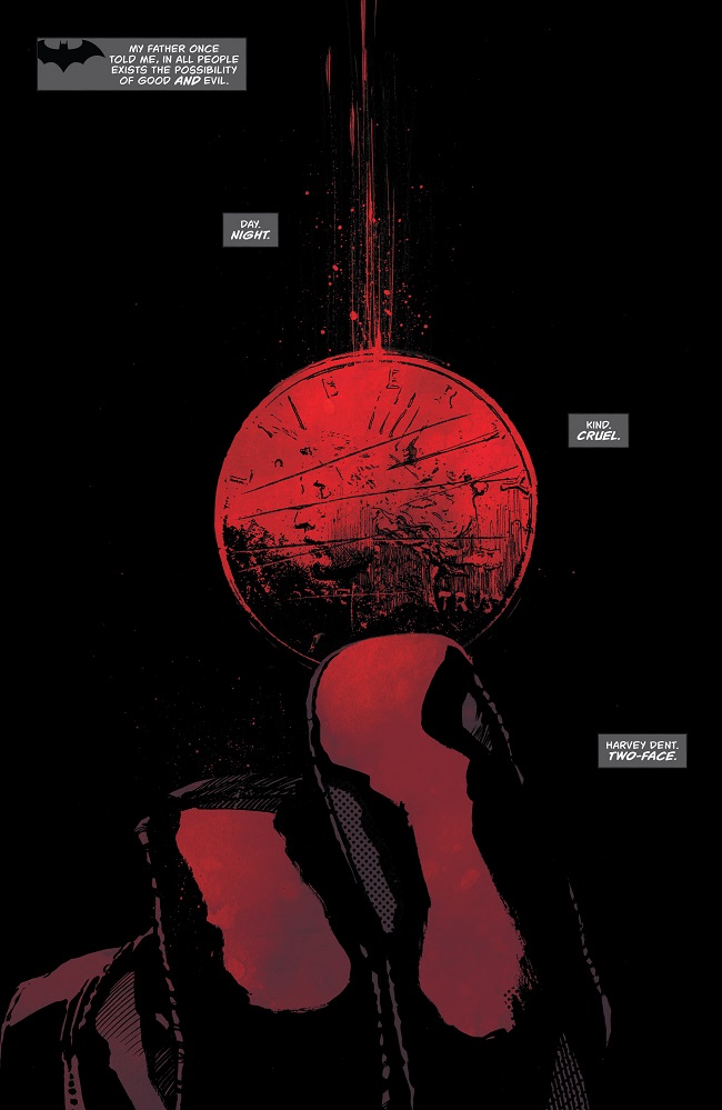 Two-Face has always been viewed as Batman’s most tragic villain. If only Harvey Dent hadn’t been scarred by acid, he could have continued his good work as D.A. in Gotham City and been Batman’s greatest ally and friend…right? Or has Batman extended Harvey Dent too much grace in his multiple attempts at reform? He’ll question himself as Harvey Dent is free once more, scarred but seemingly free of Two-Face’s influence.
