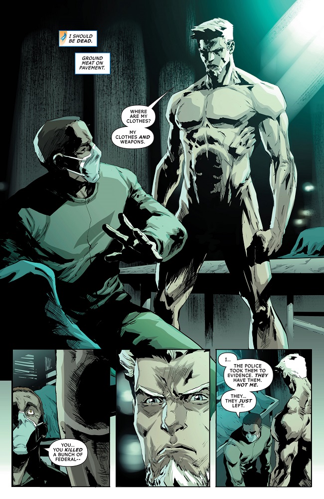 Deathstroke Year One continues! Deathstroke’s mission went so wrong it landed him in…the morgue! In a race against time, Slade must get to his target before the entire mission is scrubbed!