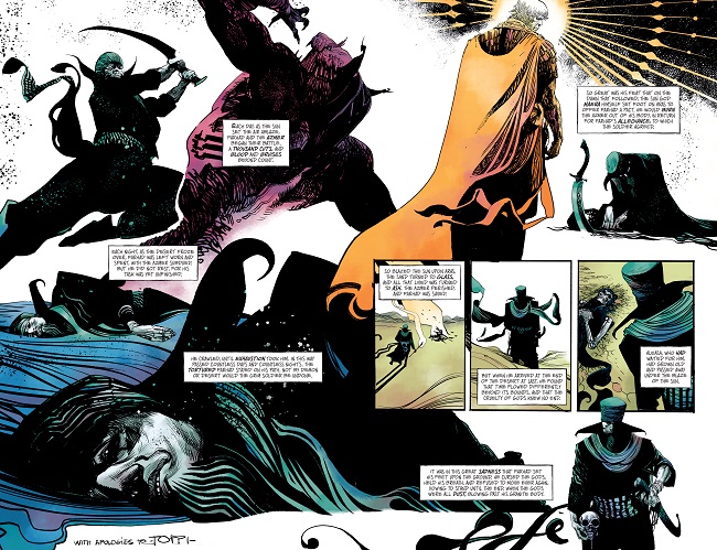 It’s a tango to the death as Batman dances with an old flame while trying not to catch on fire. Using the new information about “black noise,” Batman investigates the music box in his possession some more, which leads him to question whether music is actually able to contain physics-altering properties. Later, this theory is tested with Two-Face.