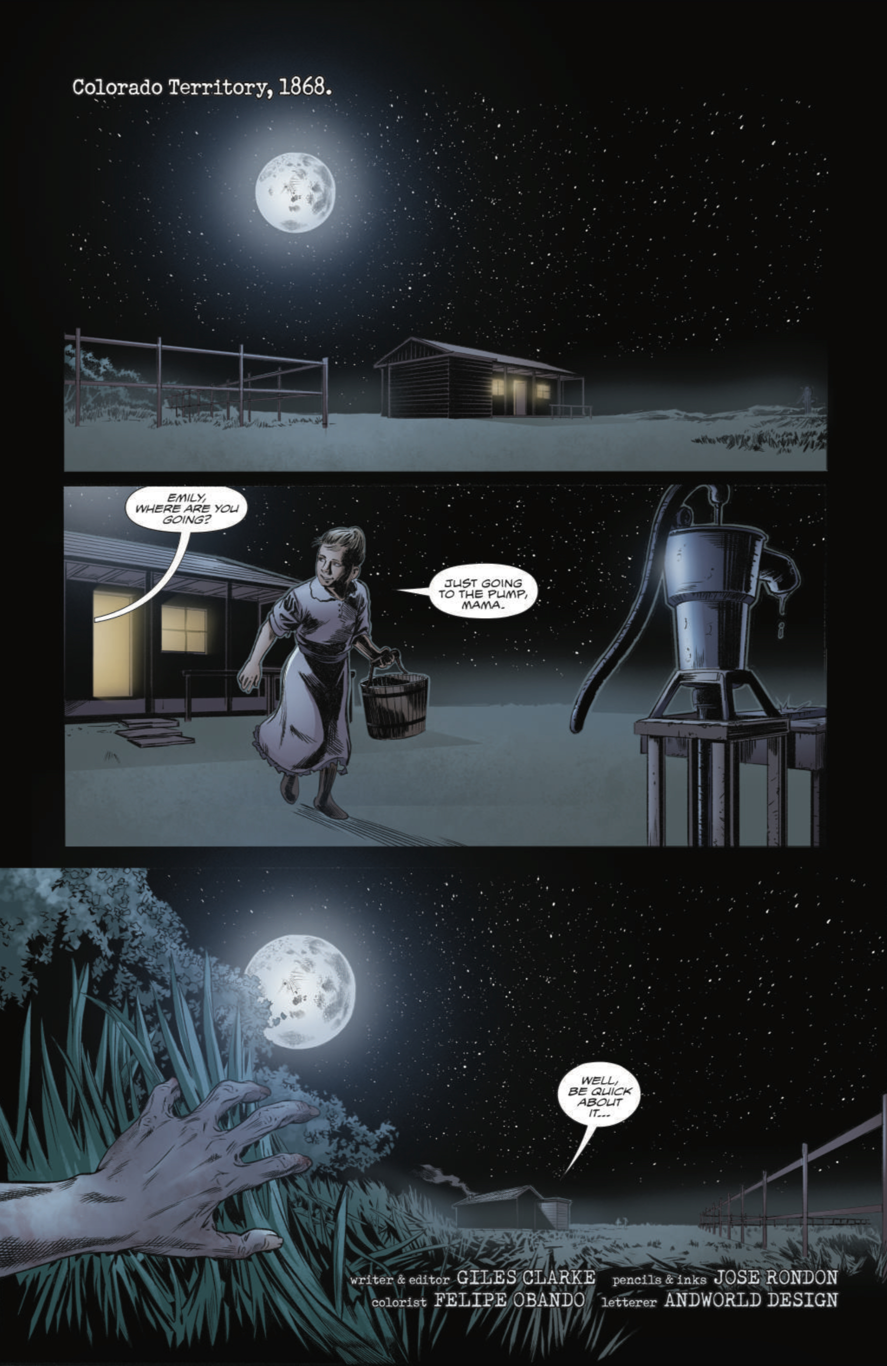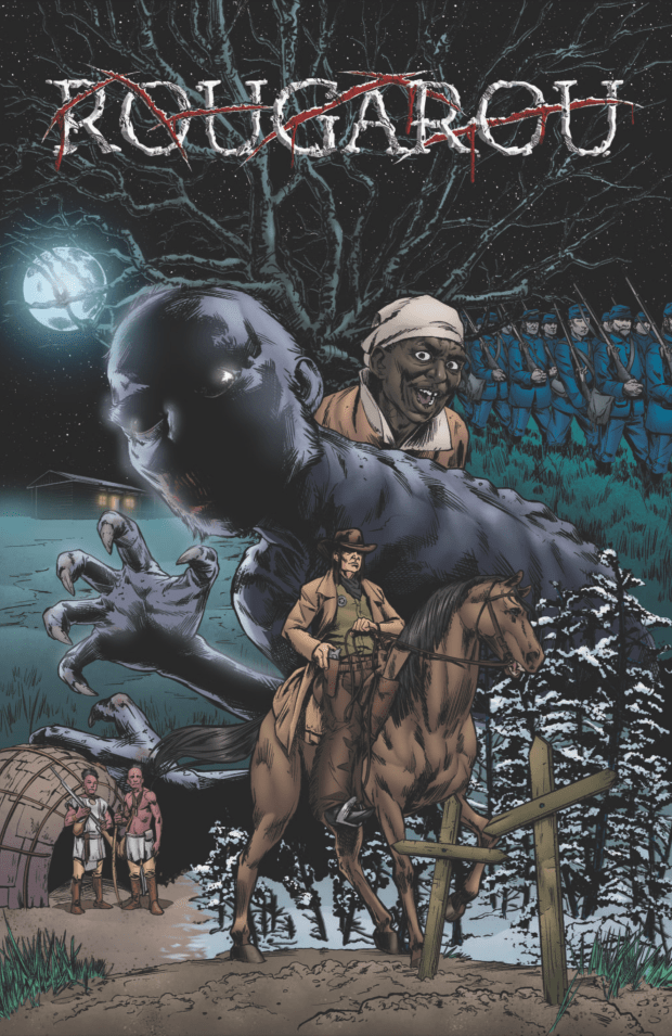 Rougarou is Western horror one-shot from Uncharted Wilderness Studios set for release this week. Set on a ranch in 1860s Colorado, it sees a young girl attacked by a mysterious beast and badly wounded. As she fights for life, and with her family rallying around her, a U.S. Marshall arrives the following morning, explaining that he has been tracking the creature all the way across the country, and recounting the story of the terrifying “Rougarou” and how it came to be.