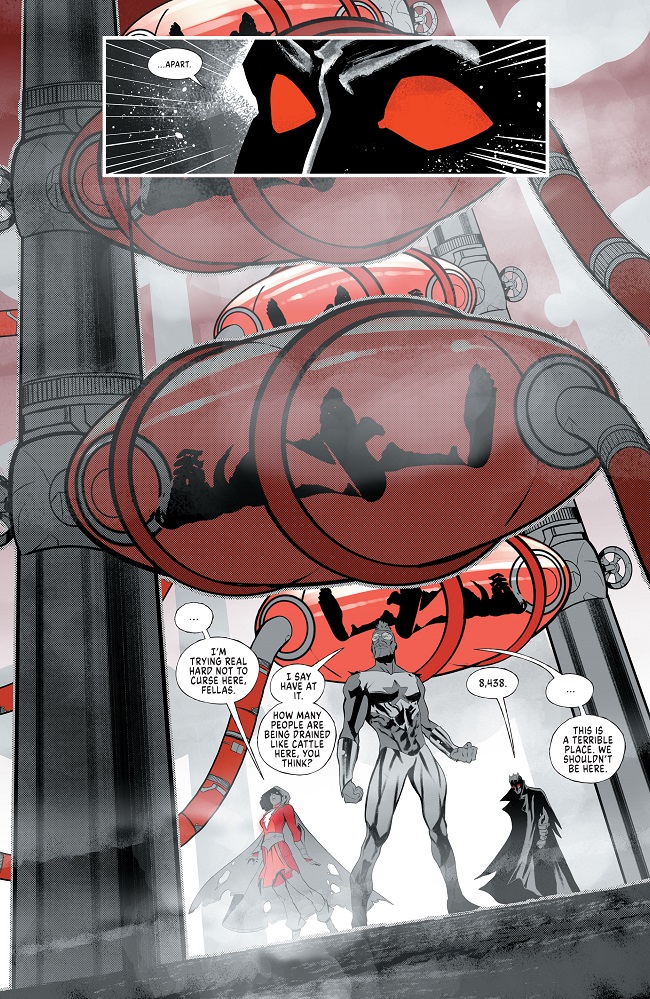With Baron Cinder and his lieutenants kept occupied by the mother of all diversions, the team attempts a daring raid on the Blood Farm to retrieve the one person who can bring sunlight back to the world. However, they have not reckoned on the terrifying presence of the Baron’s vampire knights—familiar faces whose blades are every bit as bloodthirsty as they are. And in the backup, we learn the sad fate of the King of Cities, Jack Hawksmoor!