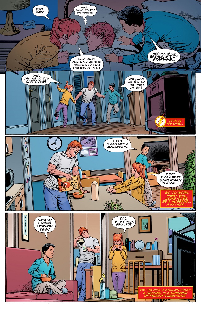 (Mondays, amiright?) Wally West is back from his adventure to save Barry Allen, but there’s no time to celebrate, as a new alien with a penchant for golden belts and trucker hair has added a new sting to the life of the Flash! This stone-cold heart-stopper of an issue will have you screaming “OHMAHGAWD!” as the Scarlet Speedster gets clotheslined in the face by a whole new era of attitude!