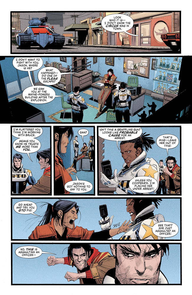 After years of rivalry, it’s the showdown you’ve been waiting for…Jason Todd versus Dick Grayson! Who’s the best Robin? Find out this issue! Plus, with the help of an unexpected new ally, Bruce Wayne aims to take Derek Powers down for good. But will the malevolent millionaire’s newfound powers prove to be too much for the former Batman?