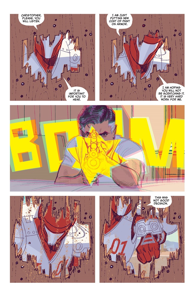 The brutal, Eisner-nominated series continues as time is running out for Christopher Chance to find his murderer. His investigation into the Justice League International takes a violent turn when Rocket Red comes knocking, looking for his friend Guy Gardner!