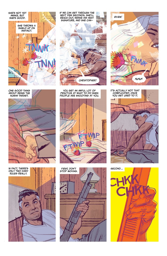 The brutal, Eisner-nominated series continues as time is running out for Christopher Chance to find his murderer. His investigation into the Justice League International takes a violent turn when Rocket Red comes knocking, looking for his friend Guy Gardner!