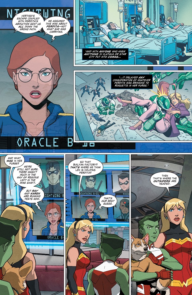 The search for Queen Perdita continues and the conspiracy behind her abduction deepens as Lex Luthor’s involvement becomes apparent! Now the Outsiders and Gorilla Squad head to a Lexcorp robotics factory in Bialya to investigate further, and what they find will rock them to their core!