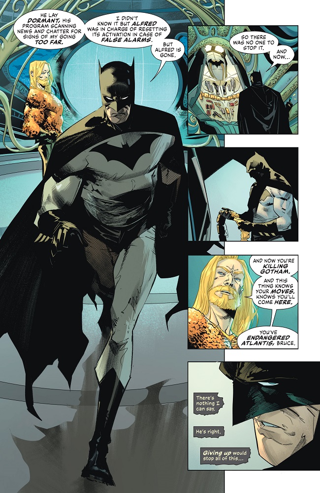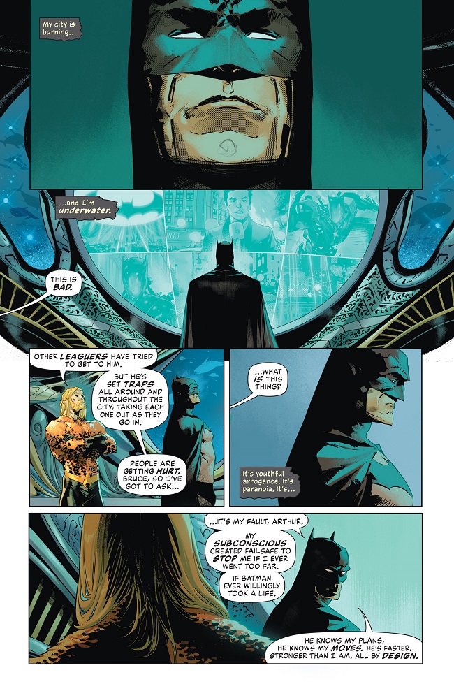 Failsafe has countered every move Batman and the Justice League have attempted. Is the Dark Knight out of options on…Earth? The bestselling Failsafe arc continues! In the back-up, we travel back to the early years of the Dark Knight Detective, revisiting his most ppsychedelic/mind-breaking period and the dawn of his backup protection system…ZUR-EN-ARRH!