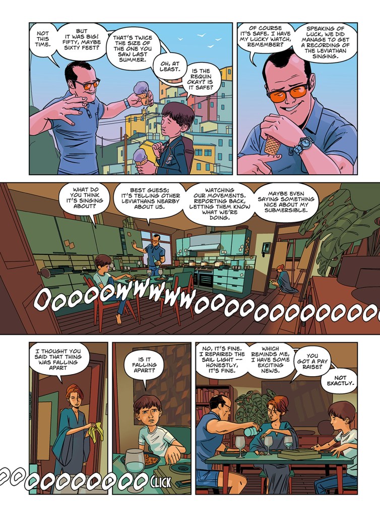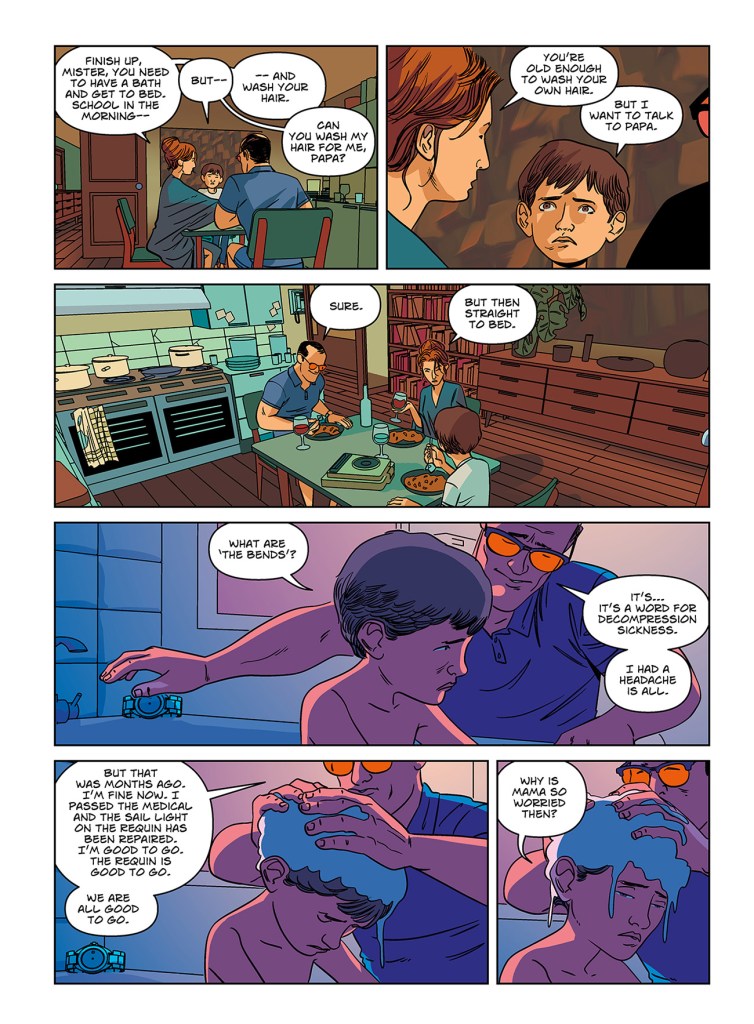Kaspar is a truly fascinating protagonist whose world completely and utterly falls apart when he is forced to live without his hero. The brief interactions between Kaspar and his father Swann in the early pages of the book are more than enough to establish that relationship, and as the story moves on, his father is never far from his thoughts in the form of the relentless ticking of his ‘lucky’ watch, which Kaspar claims for his own, and a recurring underwater dream where he and his dad are briefly reunited.