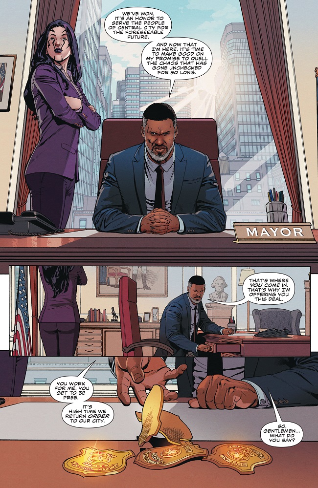 When Gregory Wolfe wins the mayorship of Central City, he implements a radical agenda to instill order…including deputizing the Rogues to enforce the law and ridding the city of its well-known vigilante—the Flash!