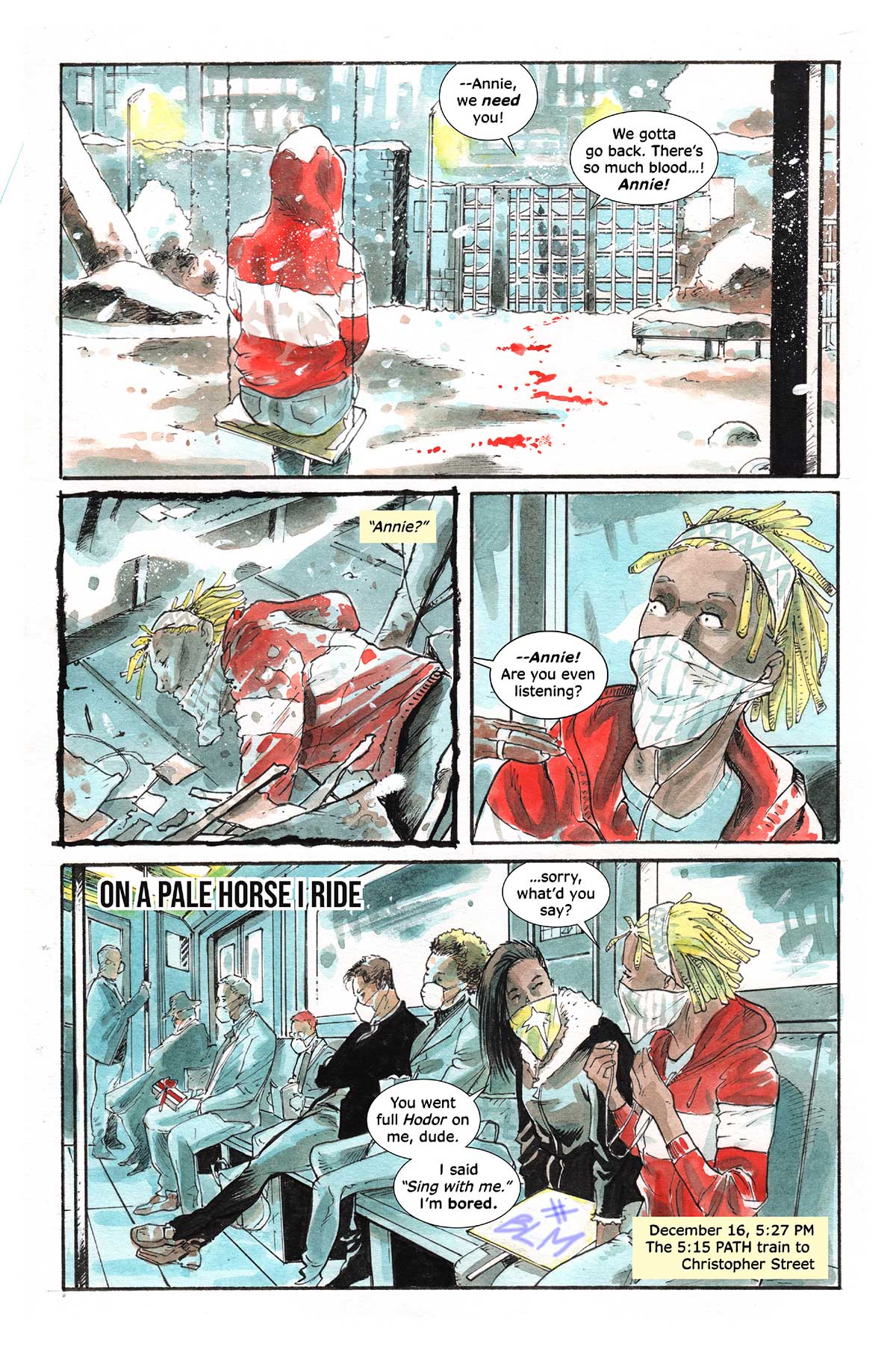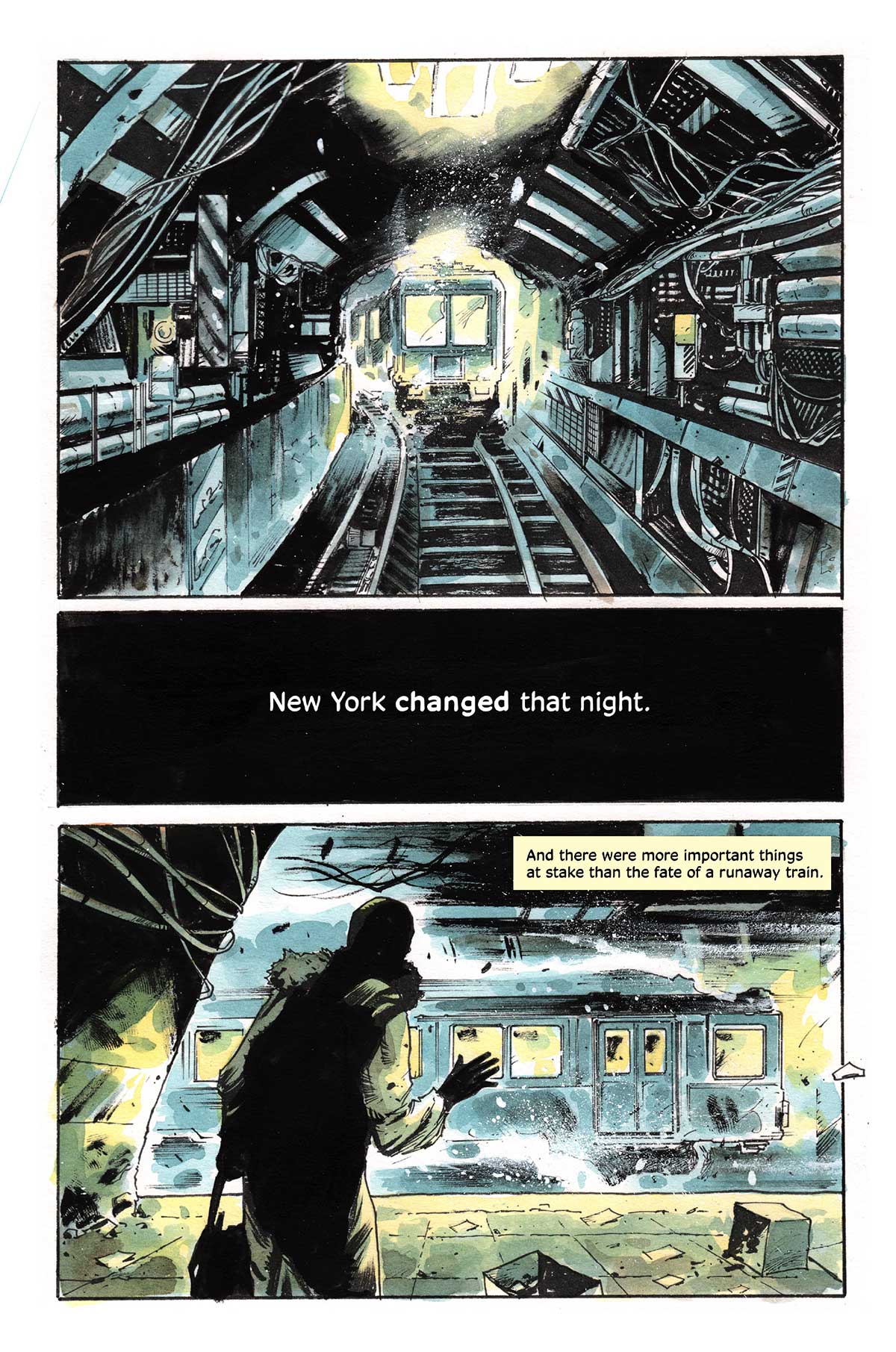 One thing I particularly liked about this story is the fact that it isn’t at all preoccupied with what’s going on in the rest of the world. The events, whatever they may be, that are causing such widespread disruption to New York – including the train crash itself – are very much secondary to the immediate situation going on in the tunnel. This is a purely character focused story, an approach which seems to play heavily into Kleid’s knack for thoroughly believable dialogue.