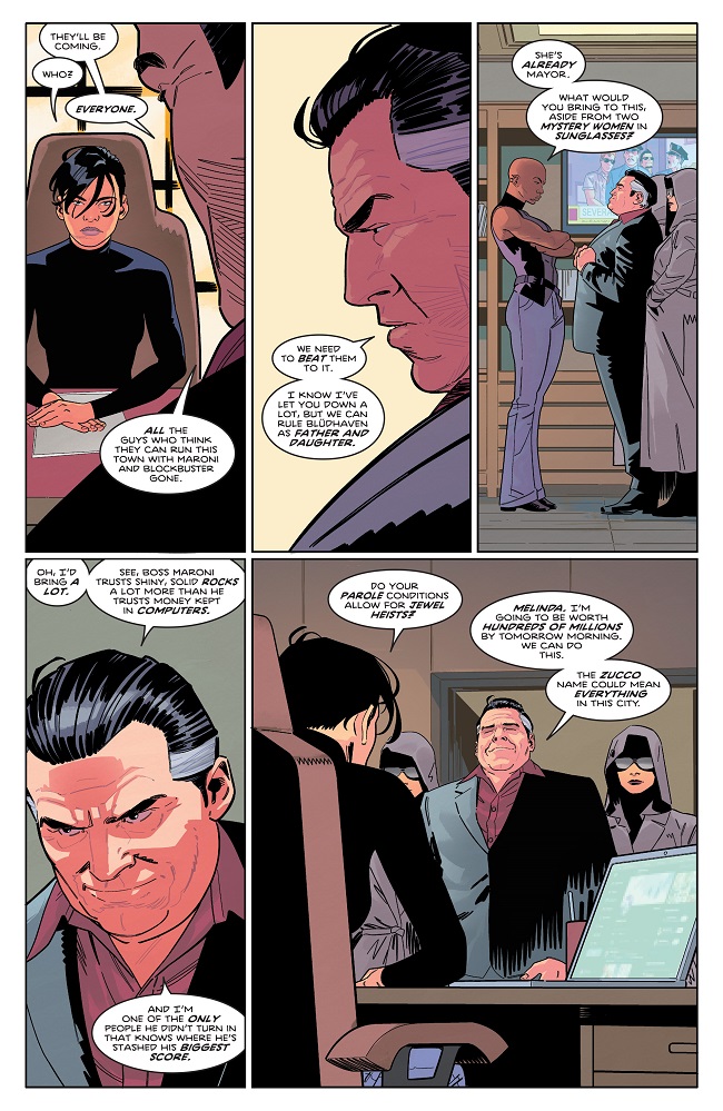 With Blockbuster off the table, the crime families all head to Bludhaven in an attempt to claim the city as their own…including Tony Zucco himself! This should be easy, right? Since his “daughter” Melinda Zucco is currently the mayor, and definitely not secretly working with Nightwing to take down crime bosses?