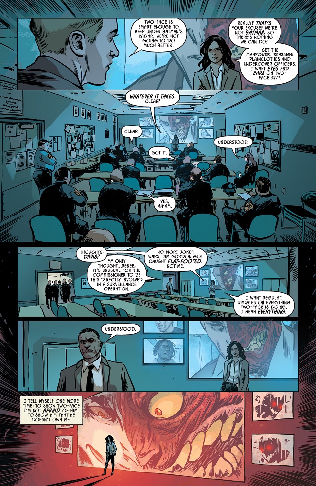 A high-profile criminal operation is foiled by the GCPD, and in the eyes of Commissioner Renee Montoya, there’s only one suspect worth investigating: the murderous gangster known as Two-Face. But every report appears to show that Harvey is back on the straight and narrow. Is the duplicitous former villain once again leading a double life? Or are ghosts from Renee’s past influencing her objective judgment?